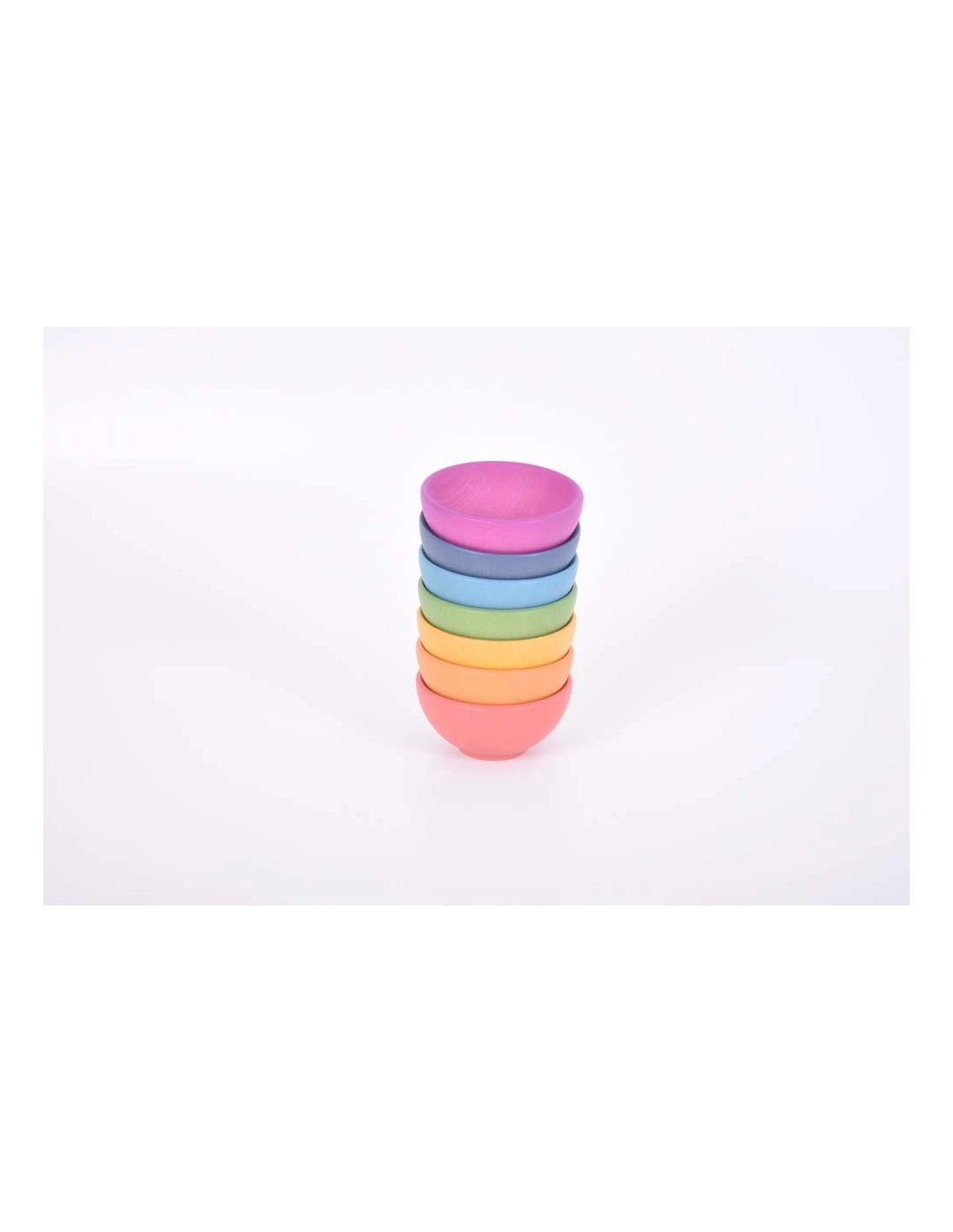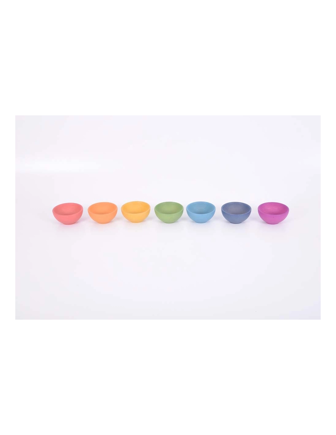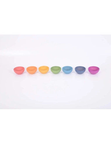 Lot de 7 figurines en bois de hêtre naturel aux couleurs de l'arc en ciel.