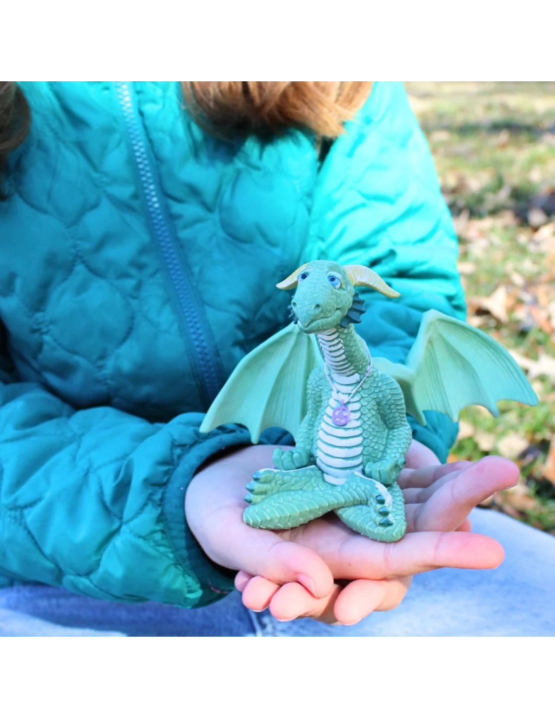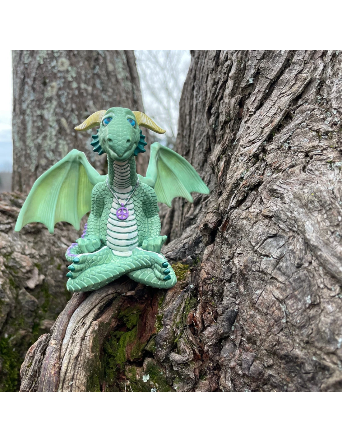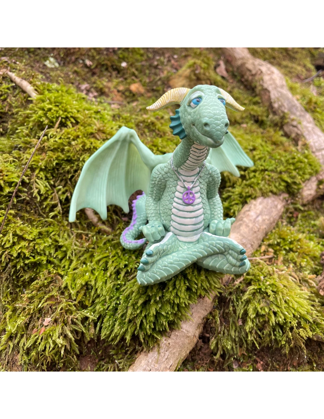 Dans tous les bestiaires fantasy, les dragons rugissent, brûlent et dominent. Aeris a choisi une autre voie. Assis en lotus, pendentif paix violet au cou, regard bleu doux levé vers l'horizon, il incarne quelque chose de rarissime dans l'univers des figurines : un dragon qui apaise. Sa palette vert menthe, ses cornes dorées et ses reflets teal doux font de cette figurine Safari Ltd une pièce à part, aussi bienvenue sur l'étagère d'un bibliophile que sur le bureau d'un enfant qui aime inventer des histoires où tout le monde s'en sort.