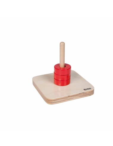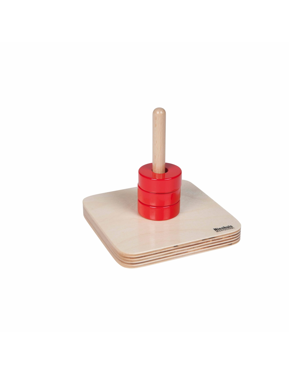Une boîte en bois avec un tiroir et deux boules pour développer la coordination main-œil et la notion de permanence des objets chez les enfants de 11 à 24 mois.