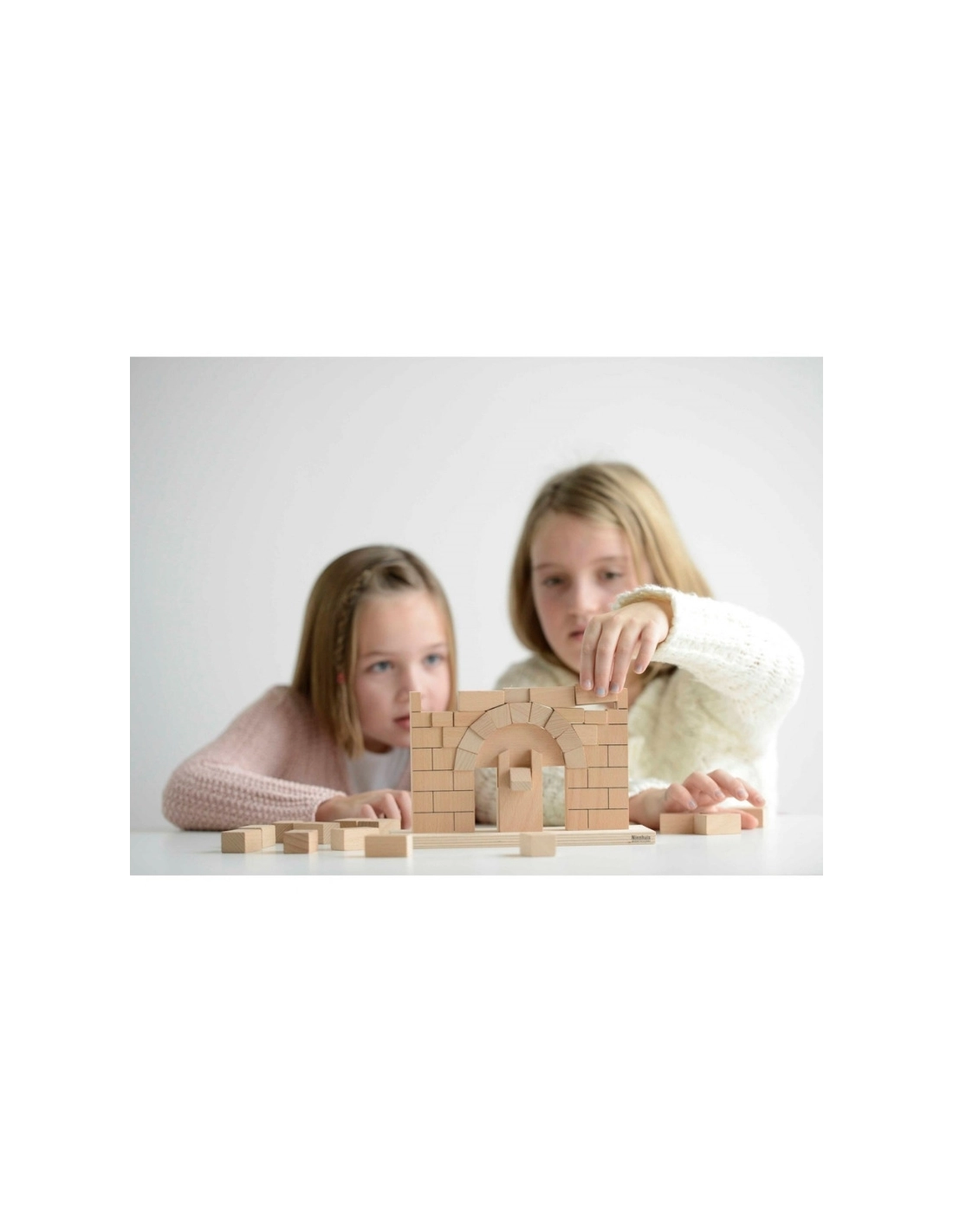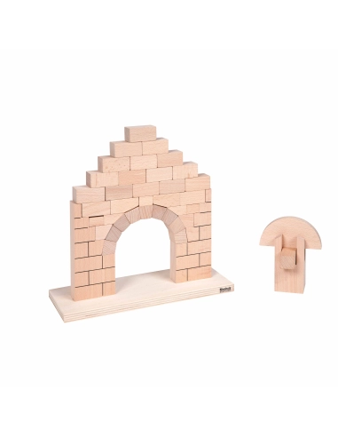 Cette représentation ingénieuse d'une conception classique permet au constructeur de découvrir le principe de la clé de voûte et sa fonction dans le support d'une arche. Fabriqué à partir de bois de hêtre.