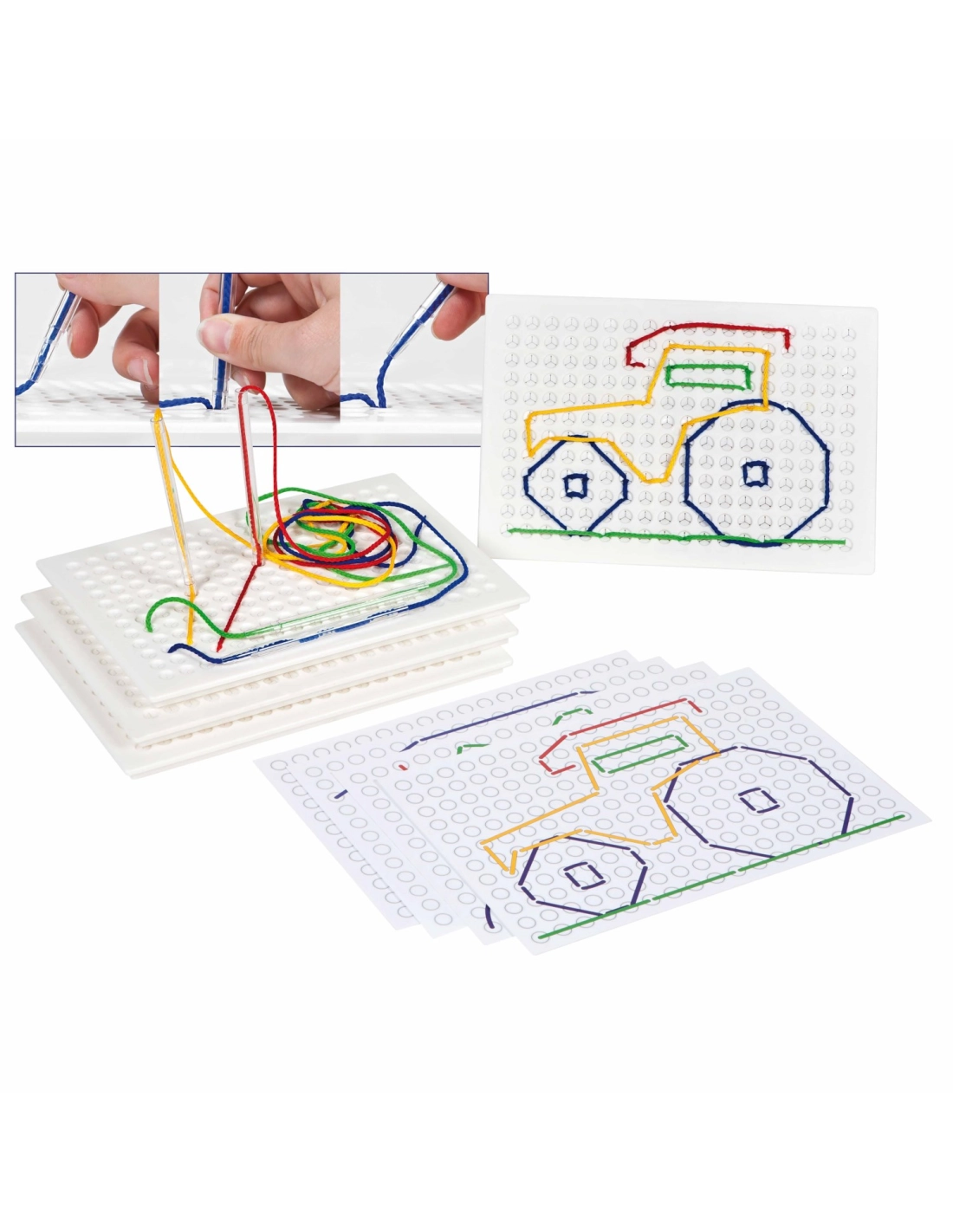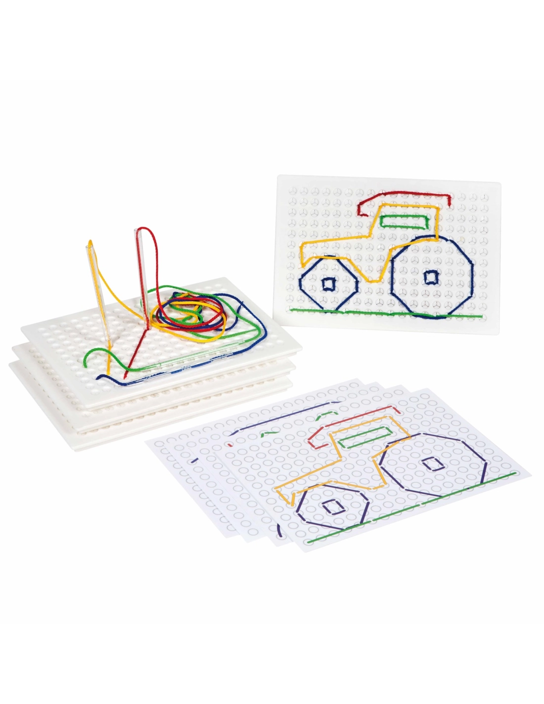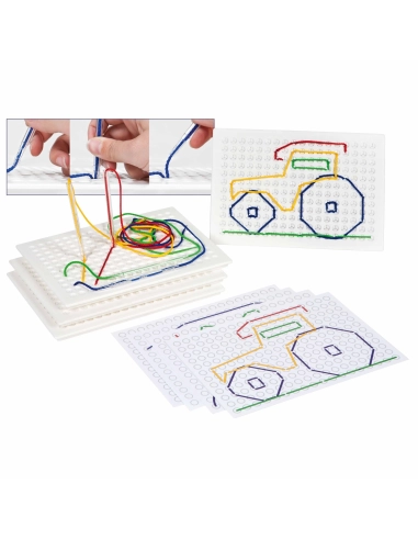 Découvrez notre set de 4 tableaux à piquer, une activité éducative idéale pour développer la motricité fine, la coordination et la créativité des enfants dès 3 ans. Avec 20 ficelles et 4 piques inclus, ce kit offre des possibilités infinies pour la création de motifs et la préparation à l'écriture par le jeu.
