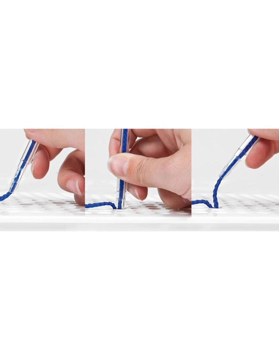 Nous proposons un pack de quatre crayons de laçage spécialement conçus pour faciliter le jeu de laçage des enfants. Ces crayons en plastique transparent permettent d'enfiler facilement le fil ou le lacet, aidant ainsi les enfants à maîtriser cette compétence essentielle tout en s'amusant.
