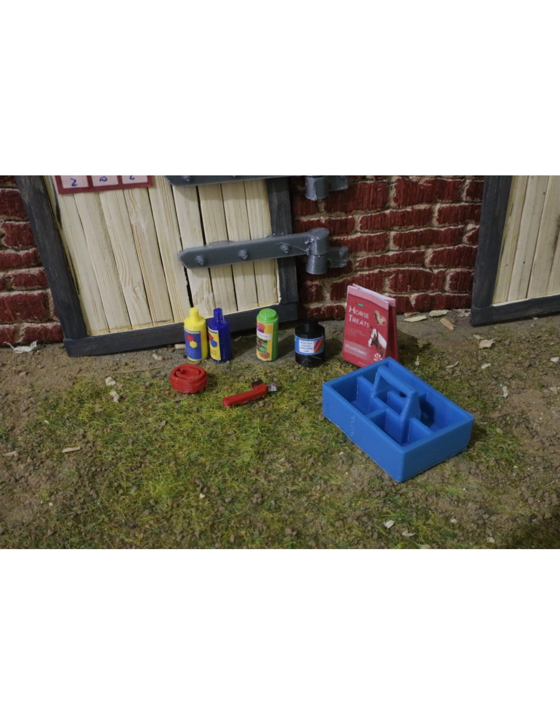 Optimisez l'entretien de vos chevaux miniatures avec notre bac de pansage, accompagné de produits essentiels pour le soin des chevaux.