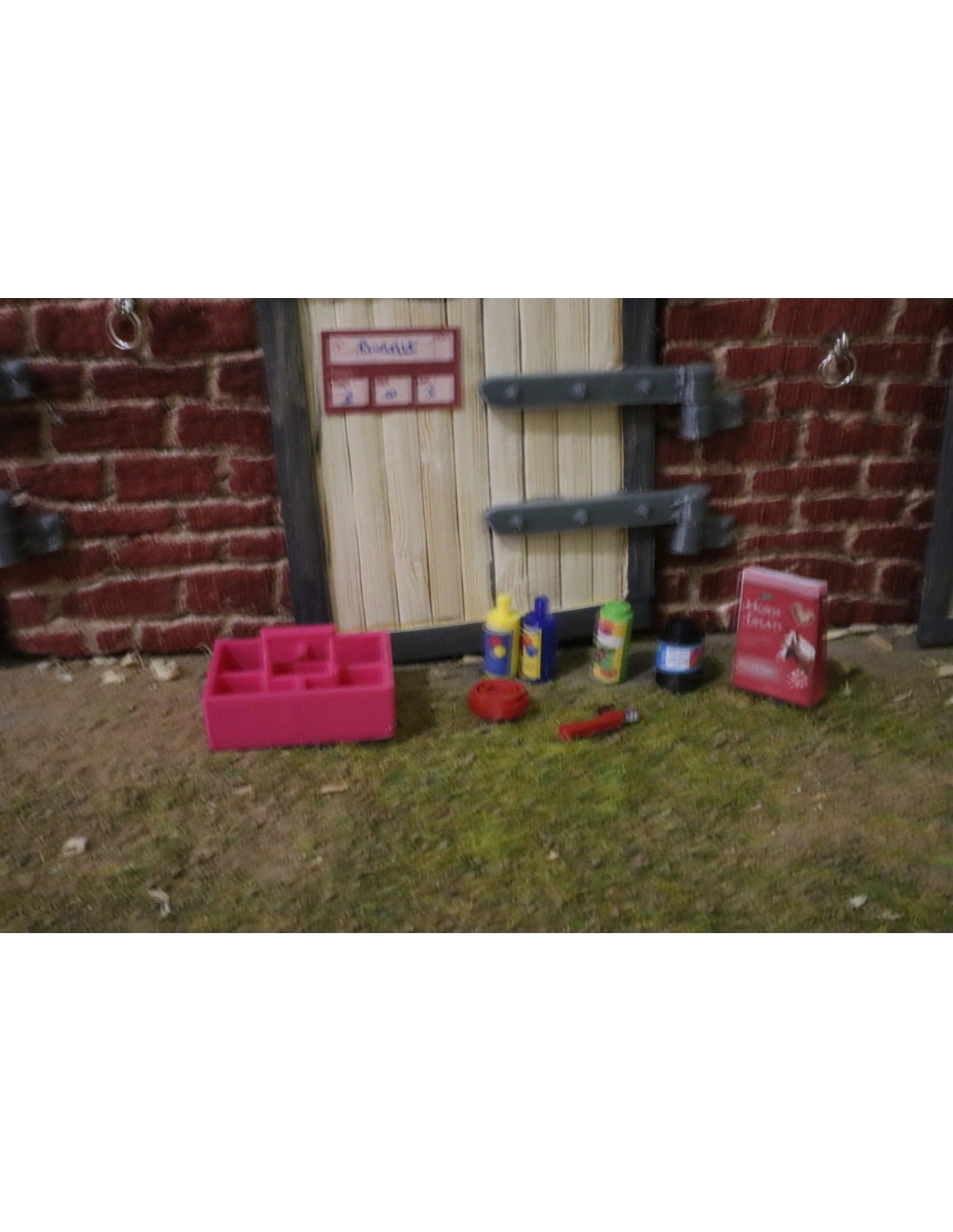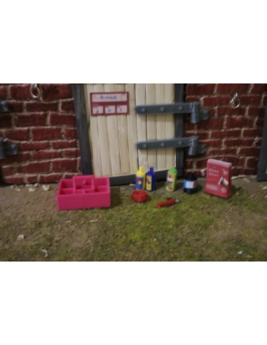 Le bac de pansage rose est conçu pour les collectionneurs qui souhaitent non seulement prendre soin de leurs figurines de chevaux mais aussi ajouter une touche esthétique à leurs dioramas. Ce set comprend tous les accessoires nécessaires pour un entretien complet, reflétant les pratiques réelles de toilettage équin. Utilisez ce bac pour enseigner ou démontrer les procédures de soin dans un contexte de modélisme, rendant chaque session éducative et agréable.