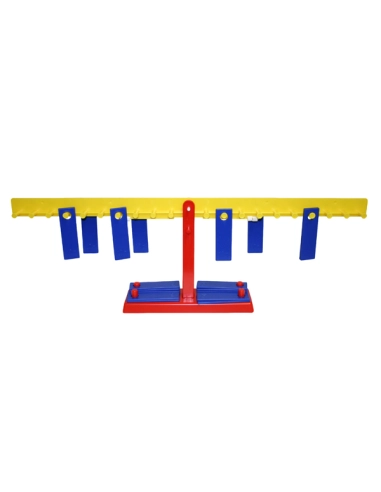 Cette balance à bascule permet de travailler de nombreux points essentiels en mathématiques :