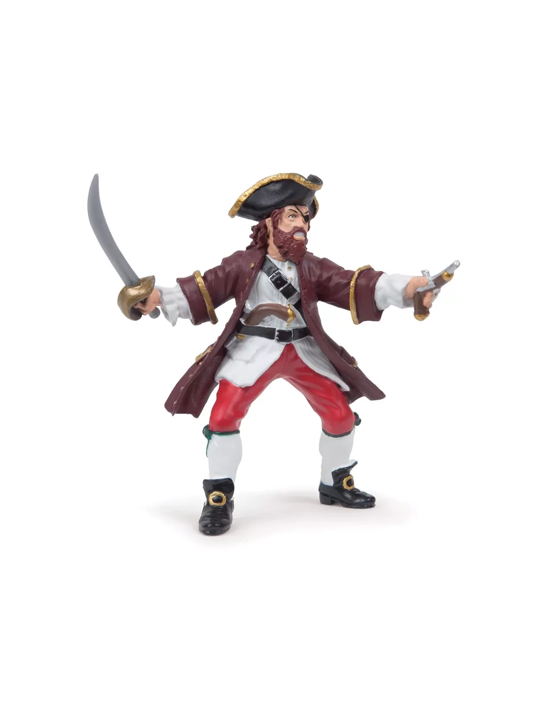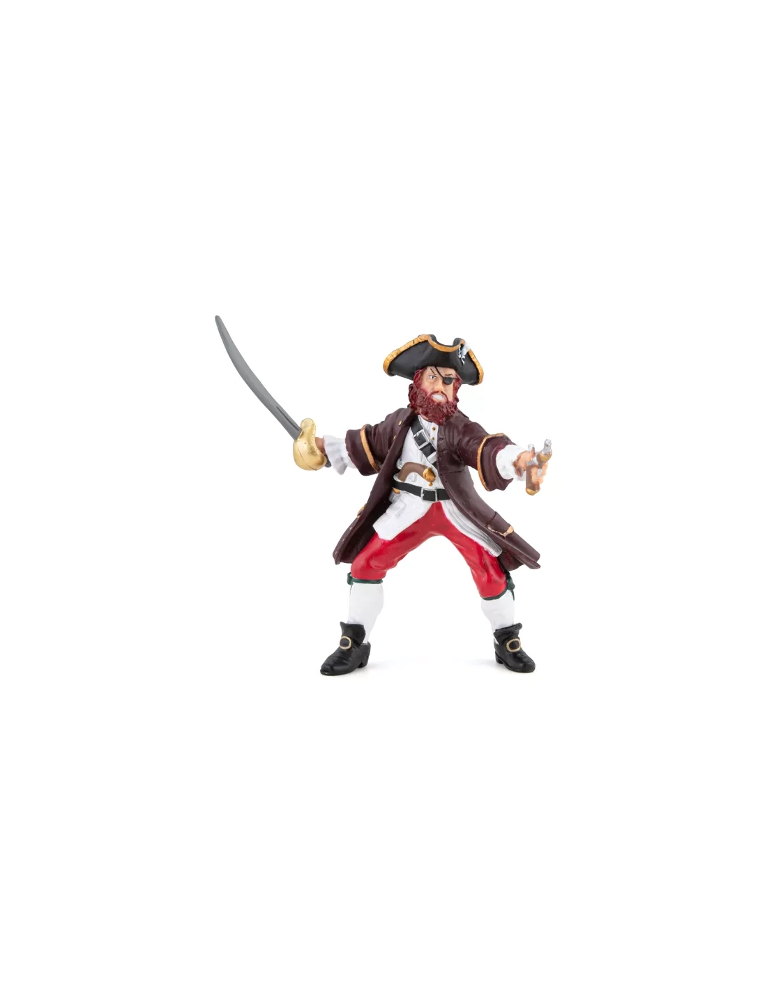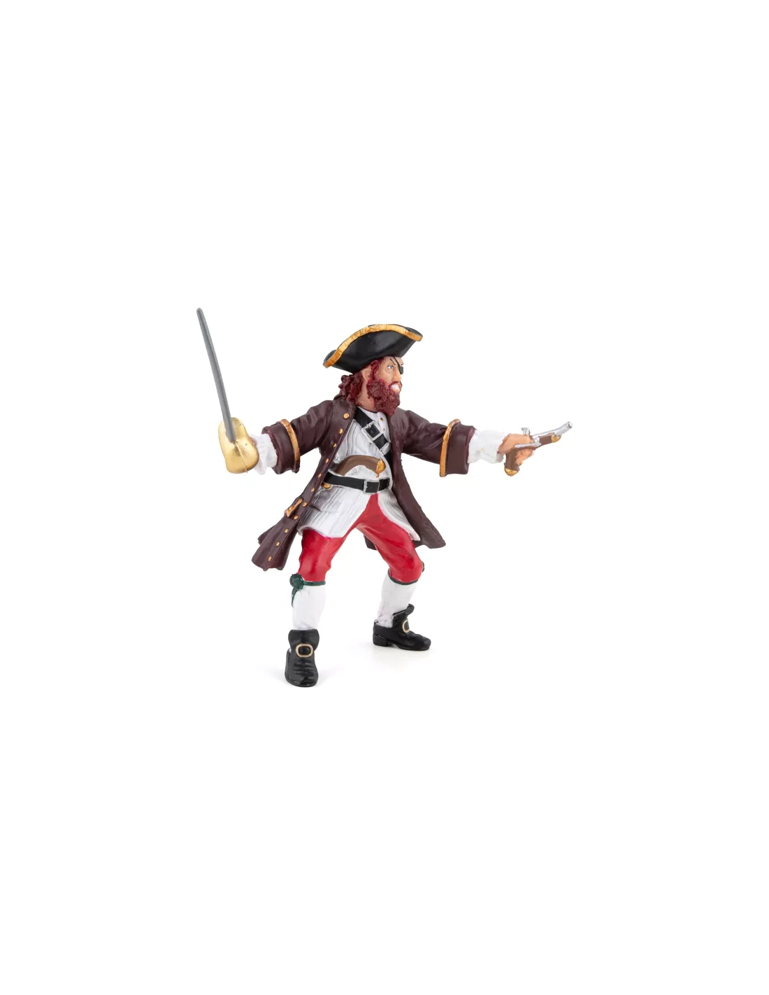 La figurine pivot autour de laquelle tout l'univers Papo Pirates s'organise. Il commande le Blackbeard, possède l'Île et le trésor, affronte Barbe Noire. Chaque autre figurine se positionne naturellement par rapport à lui.