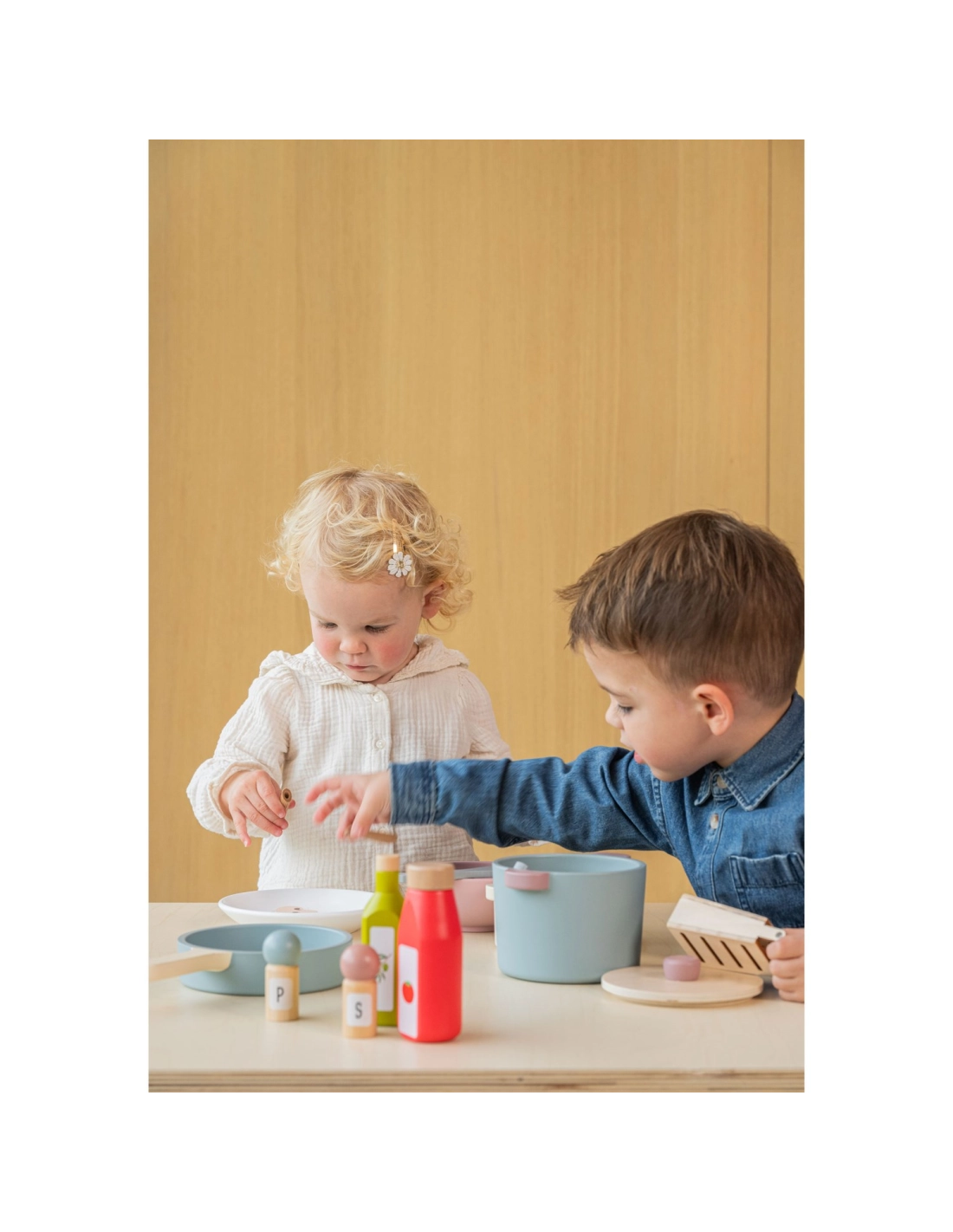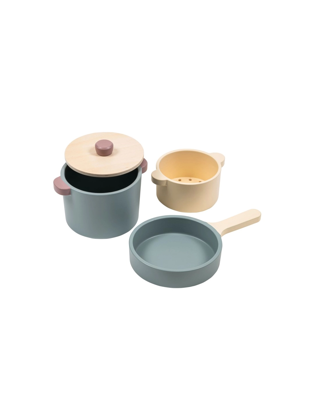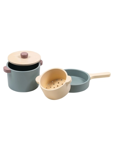 Cette batterie de cuisine en bois 4 pièces invite les enfants à jouer au petit cuisinier avec un saucepan pour “frire” la viande, une passoire idéale pour égoutter pâtes ou légumes, et un grand pot muni d’un couvercle pour préparer soupes, couscous, semoule ou spaghettis imaginaires. Un jouet d’imitation qui stimule la créativité, développe la motricité fine et initie aux gestes du quotidien.