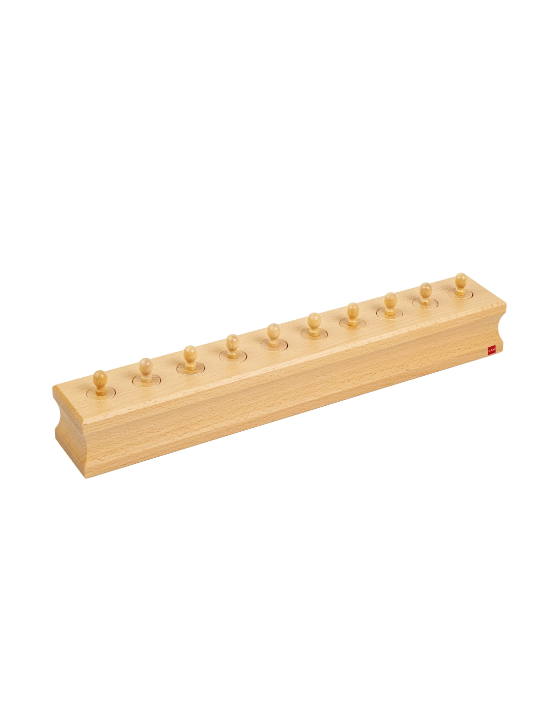 Les cylindres introduisent l'enfant à la première étape de la discrimination visuelle de la taille. Les cylindres diminuent à la hauteur mais augmentent de diamètre de grand à mince et court à épaisseur. Fait de bois de hêtre massif avec une finition laquée lisse satinée. Chaque cylindre est poncé individuellement et laqué.
