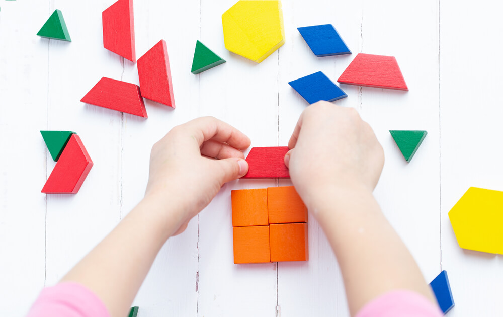 Demandez à l’enfant de reformer l’hexagone avec différentes combinaisons :