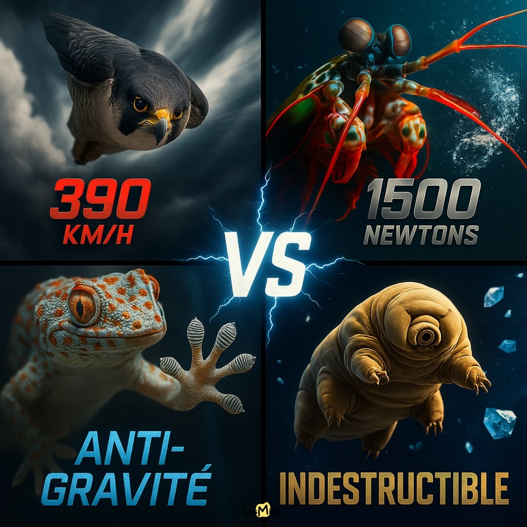 Découvrez comment les animaux pulvérisent tous les records humains grâce à des performances extraordinaires qui défient les lois de la physique. Du faucon pèlerin qui atteint 390 km/h à la crevette-mante qui frappe comme une balle, ces prouesses biomécaniques révèlent les secrets les plus fascinants de la nature.