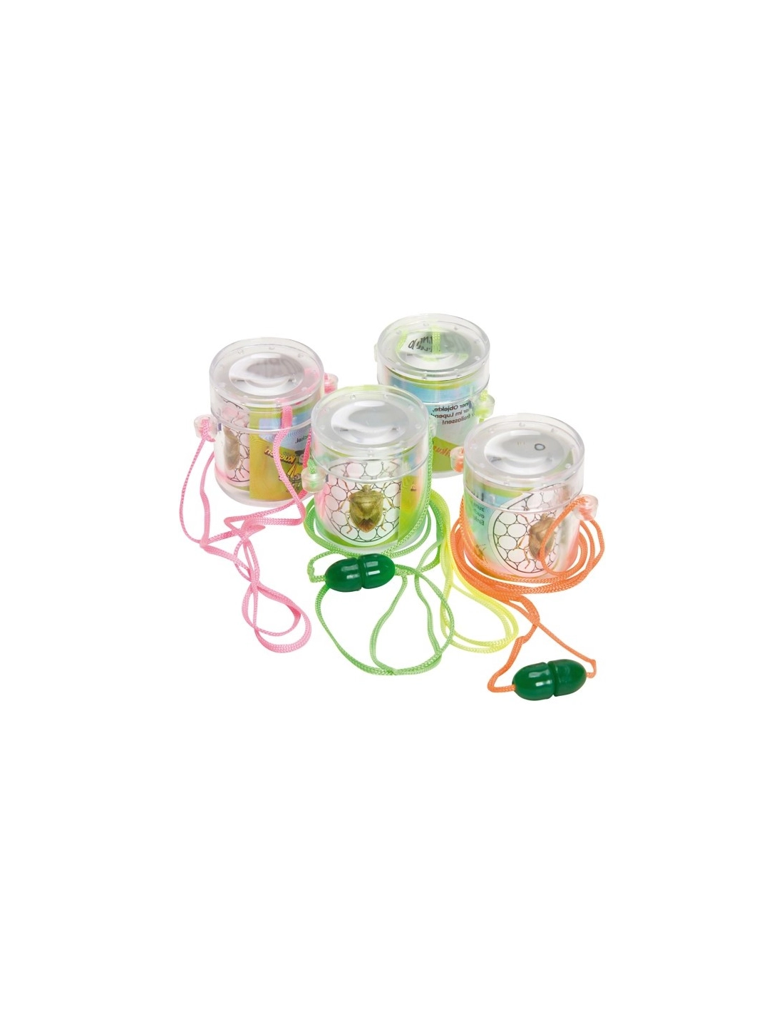 Légère et portable, notre boite d'exploration est munie d'un cordon fluo de 50 cm, que vous pouvez mettre autour de votre cou pour l'emporter partout avec vous. De plus, chaque boite peut présenter un cordon de couleur différente, parmi les options de jaune, rose, orange ou vert.