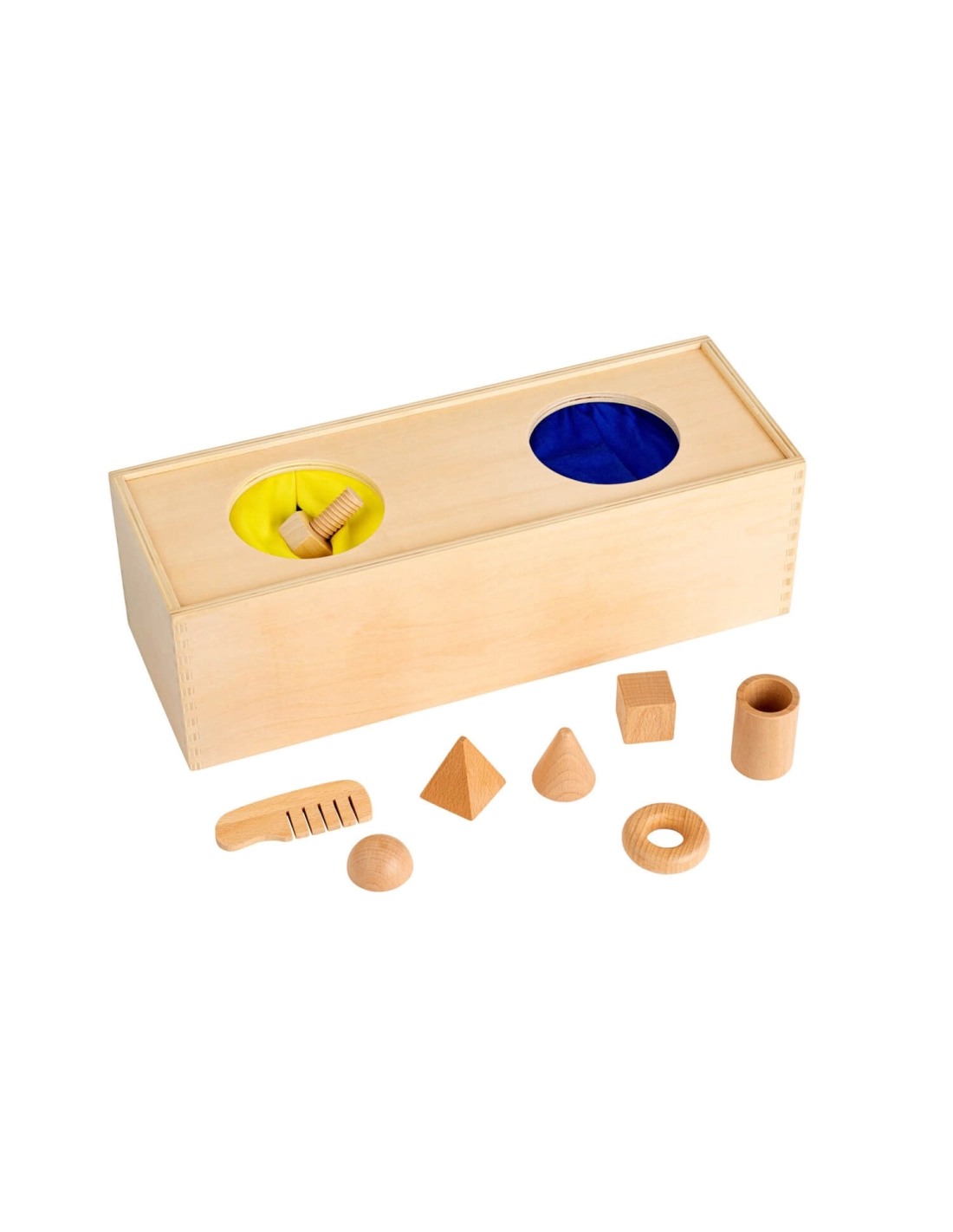 - Exploration : Encouragez l'enfant à insérer ses mains dans les ouvertures et à toucher les objets pour les identifier sans les voir.