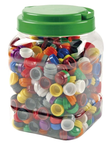 Une boîte de rangement 500 pions de couleur (un pion mesure Ø 2 x 1 cm).