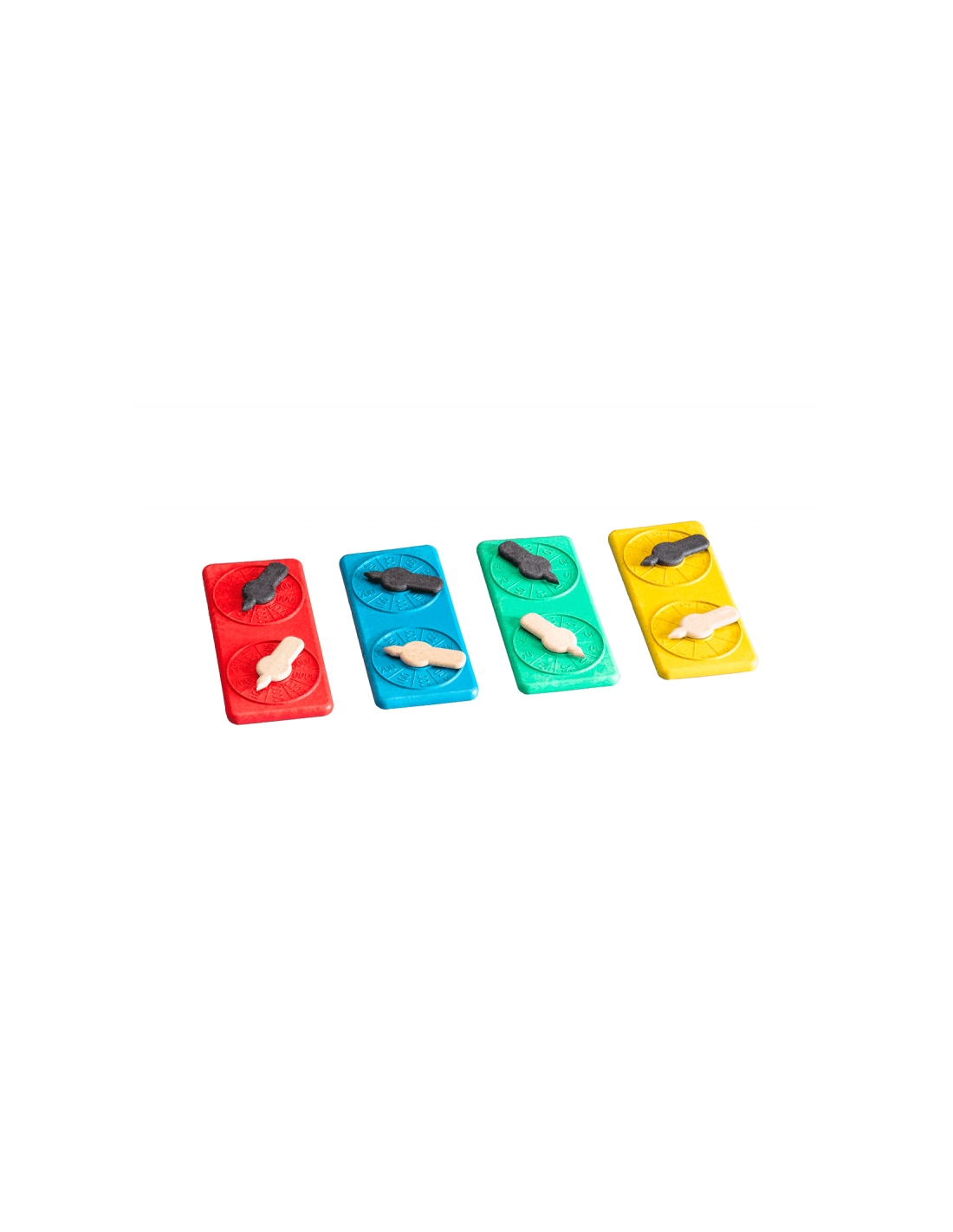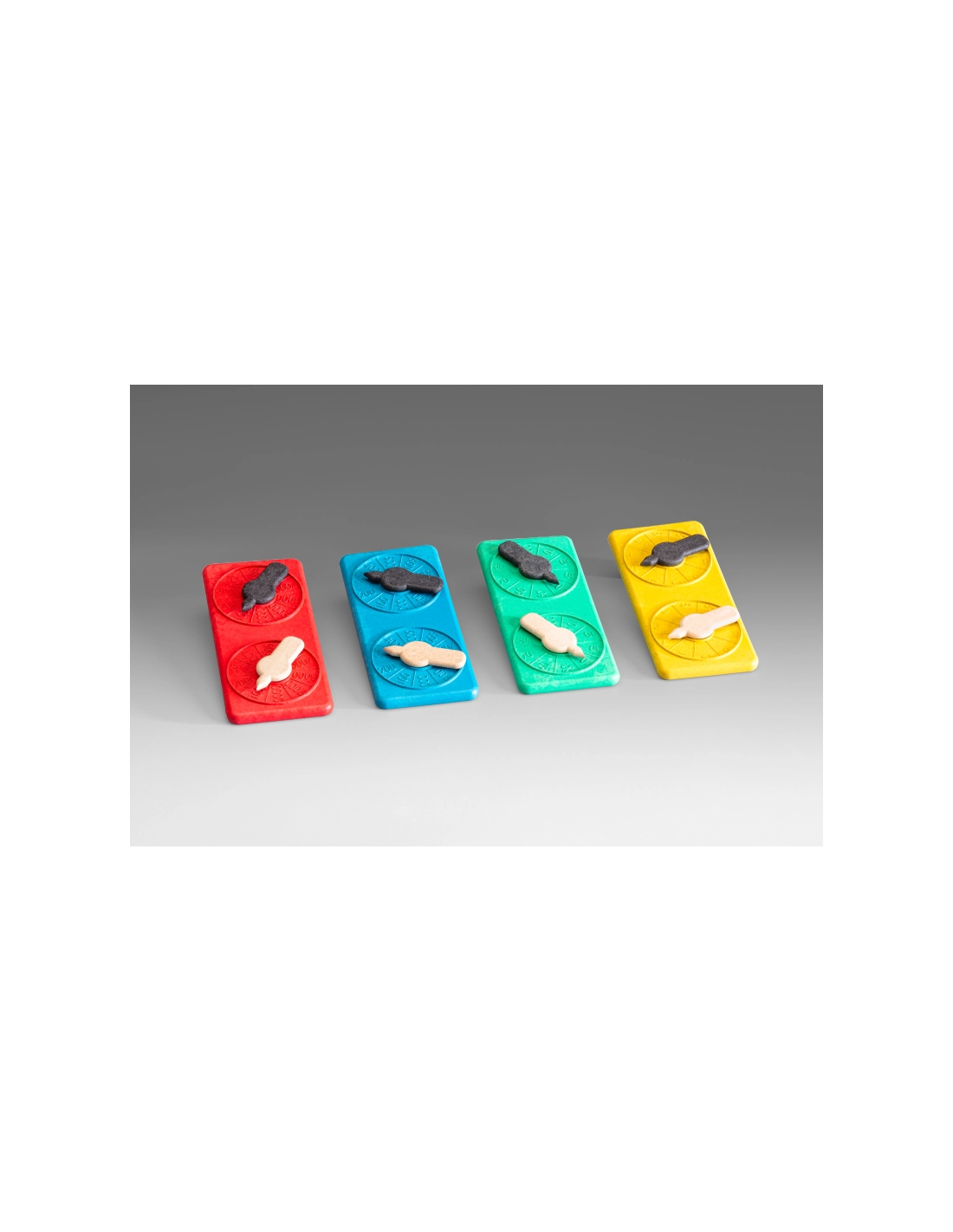 - Contenu : 4 plaquettes avec roues rotatives à double cadran