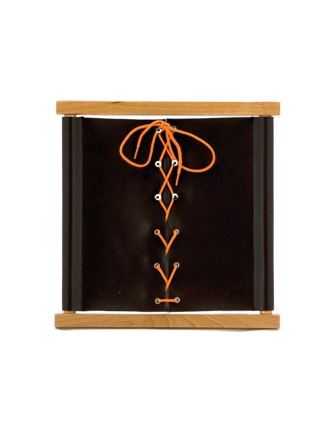 Ce cadre à lacets présente une surface en tissu noir avec des lacets oranges, attirant l'attention de l'enfant et rendant l'exercice plus engageant. Grâce à son design simple et sans fioritures, l'enfant peut se concentrer pleinement sur l'apprentissage des lacets.
