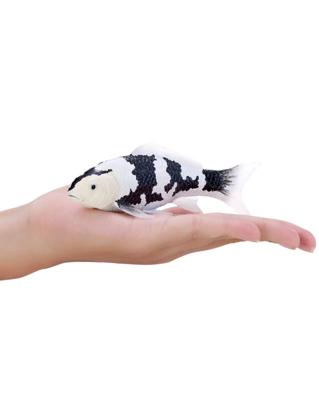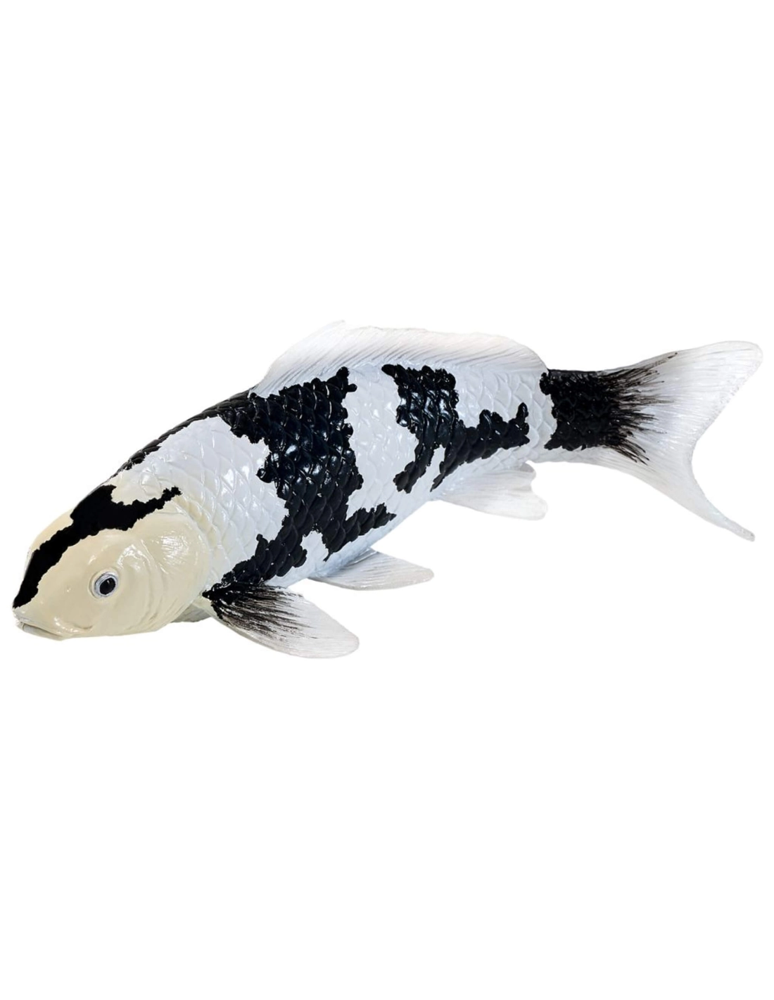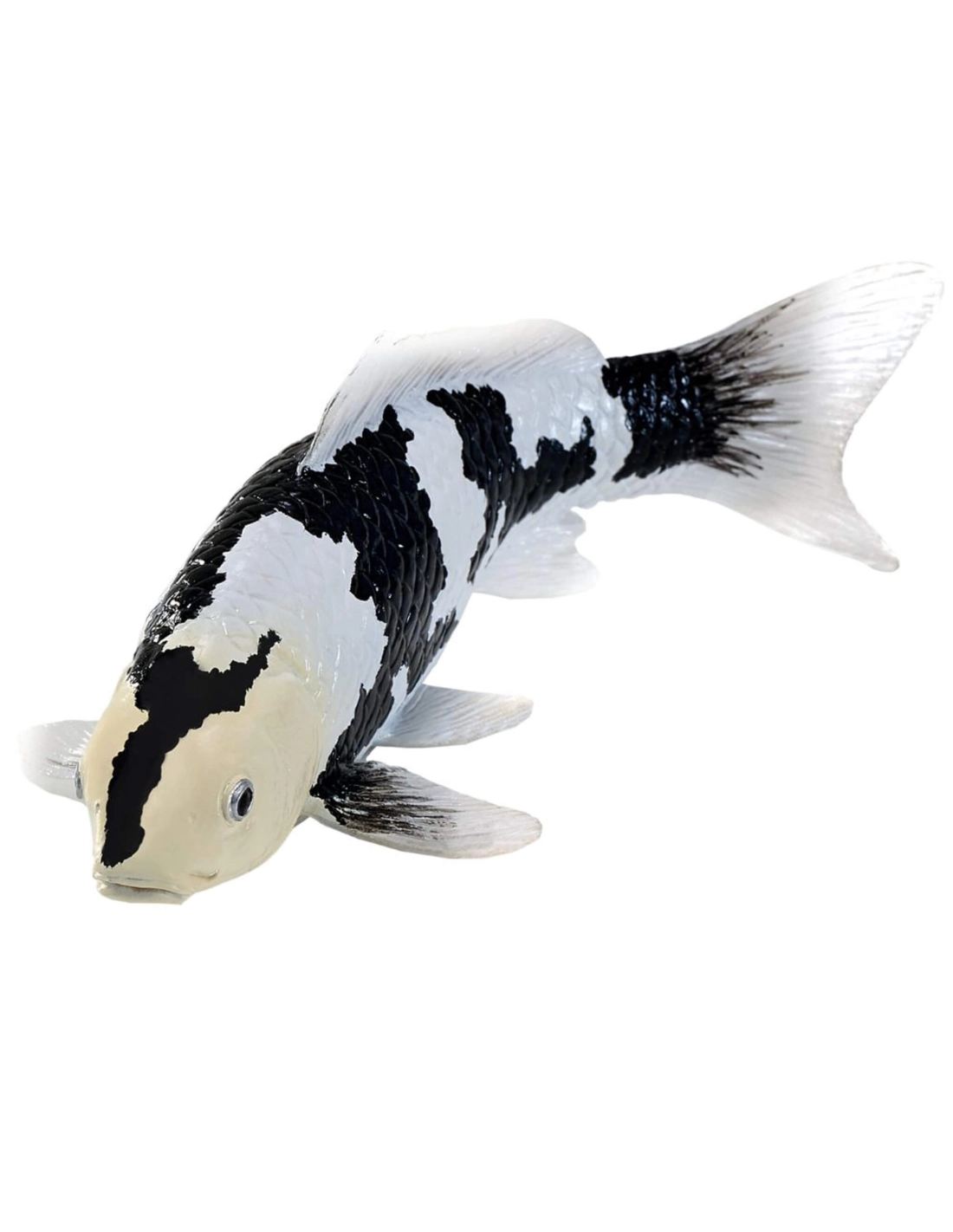 Cette reproduction de la Carpe Koï Shiro Utsuri représente l'élégance du contraste noir et blanc caractéristique de cette variété prestigieuse. La figurine Mojo capture avec précision le jeu de motifs sumi (noir) sur fond shiro (blanc), créant une composition naturelle rappelant l'art de la calligraphie japonaise.