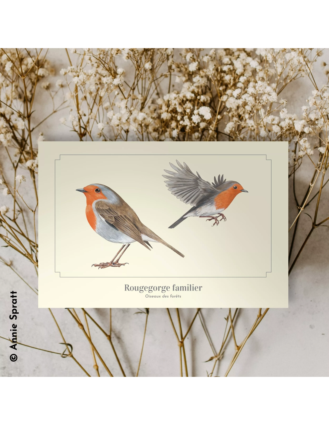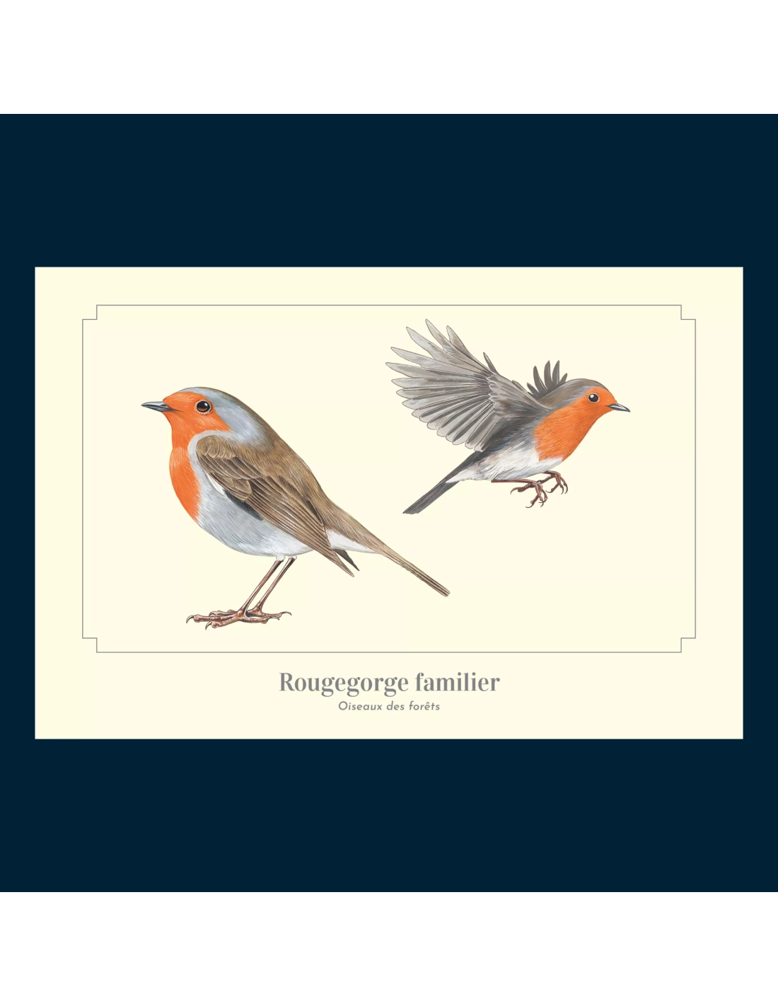 Cette figurine Papo représente un rouge-gorge, un petit oiseau familier des jardins. Sa poitrine rouge orangée et son plumage brun clair permettent de l’identifier au premier regard. Sa posture attentive évoque l’oiseau posé sur une branche, observant son environnement.
