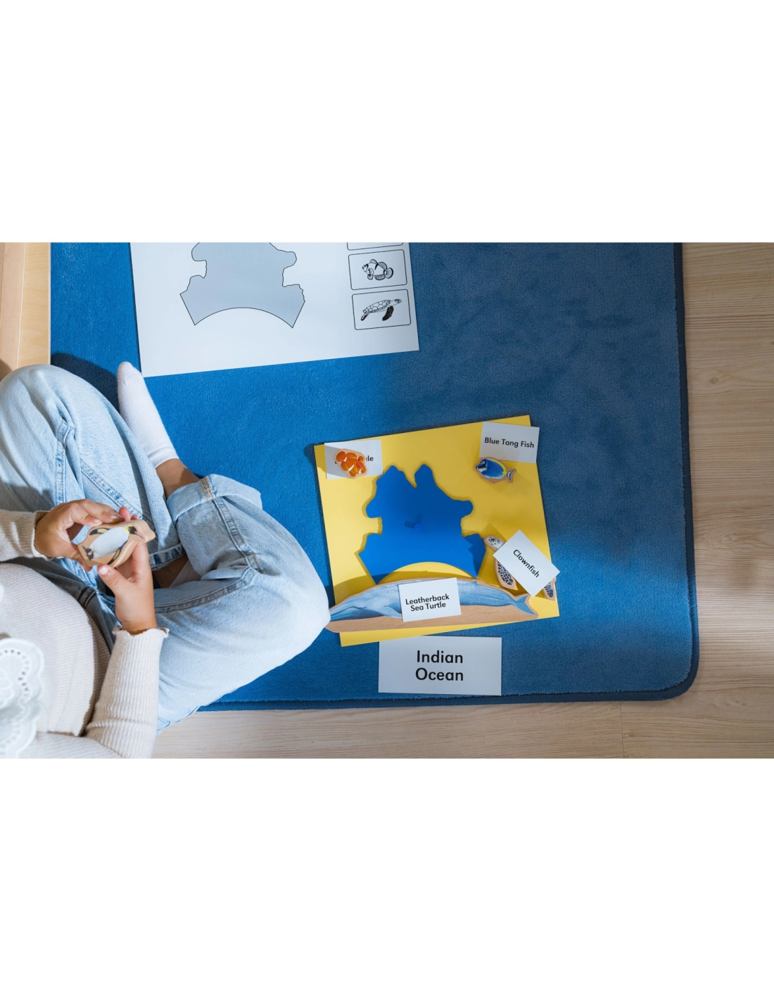 Un outil sensoriel conçu pour appréhender la répartition des continents et des océans, et le contraste entre la terre et l'eau.