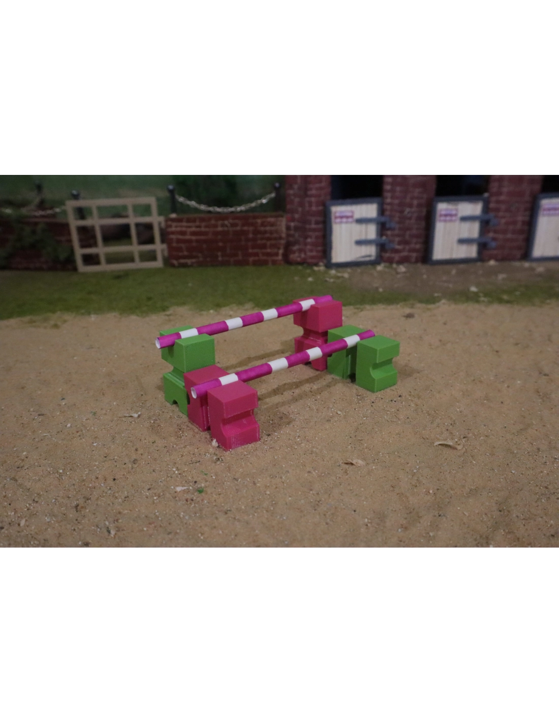 Apportez une touche de couleur à vos mises en scène équestres avec ces cavalettis miniatures jaunes et rouges, spécialement conçus pour les figurines Schleich à l'échelle 1:20. Parfaits pour recréer des séances d'entraînement à l'obstacle hautes en couleur !