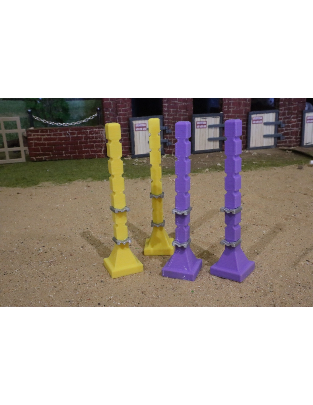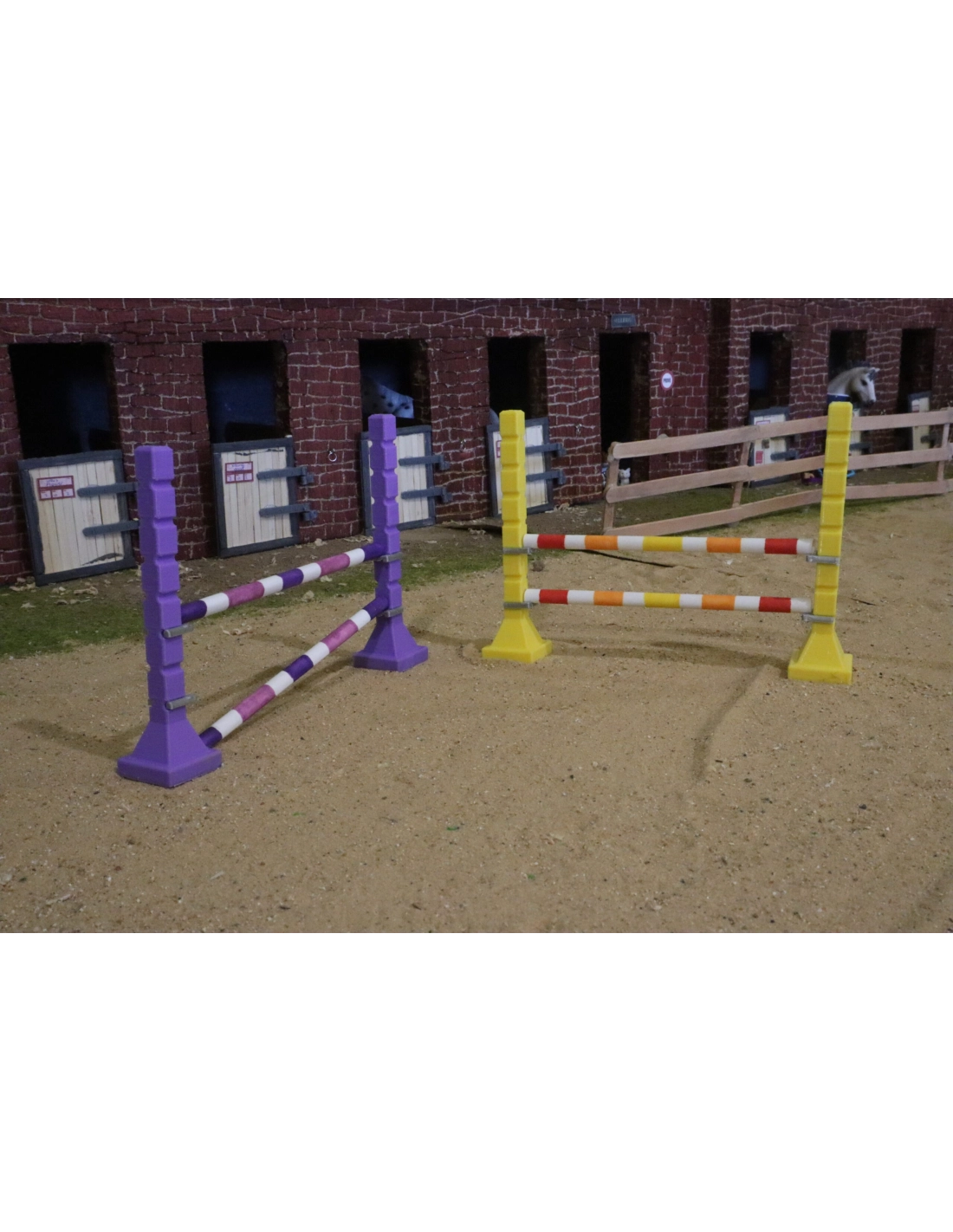 Ravivez votre espace de compétition avec ces chandeliers d'entraînement jaune et violet, parfaits pour introduire une dimension vibrante et énergique à vos événements équestres miniatures.