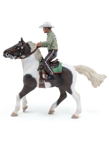Découvrez le set figurine Cheval Western et son cavalier Papo référence 51573, représentant un duo équestre dans l'univers de l'équitation américaine. Ce modèle peint à la main capture l'esprit du Far West avec son harnachement western authentique.