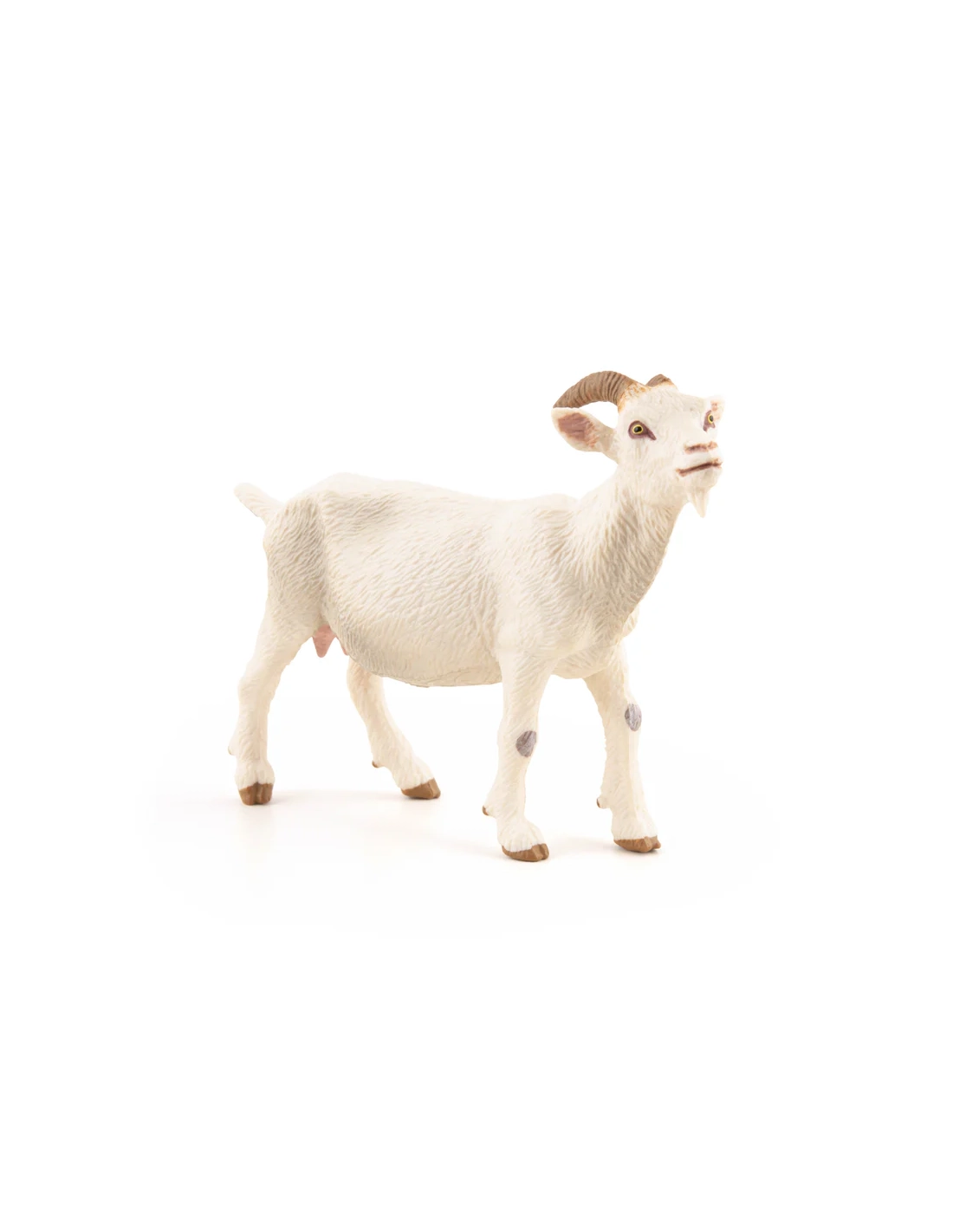 La chèvre n'a pas l'impressionnante présence du taureau ni le capital sympathie de l'agneau. Mais dans une collection de ferme sérieuse, c'est l'une des pièces les plus importantes — parce que c'est elle qui représente l'élevage caprin, l'un des plus anciens au monde, et dont les produits (fromages de chèvre, yogourts caprins) font partie du patrimoine fromager français. Une figurine pour les amateurs de terroir et de gastronomie autant que pour les enfants.