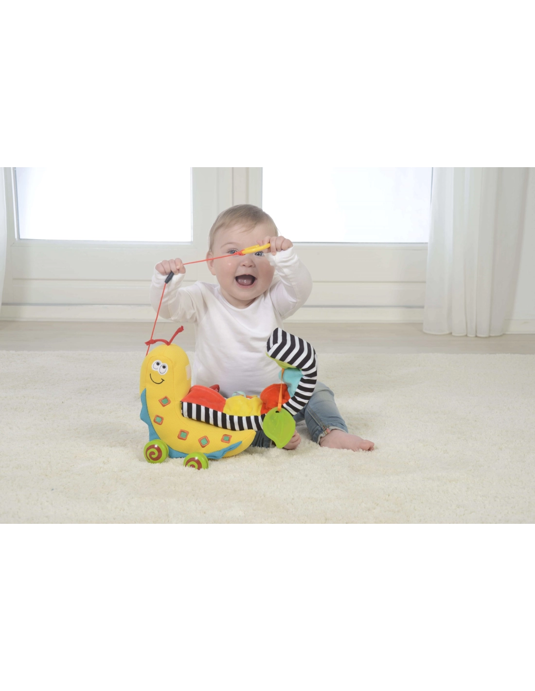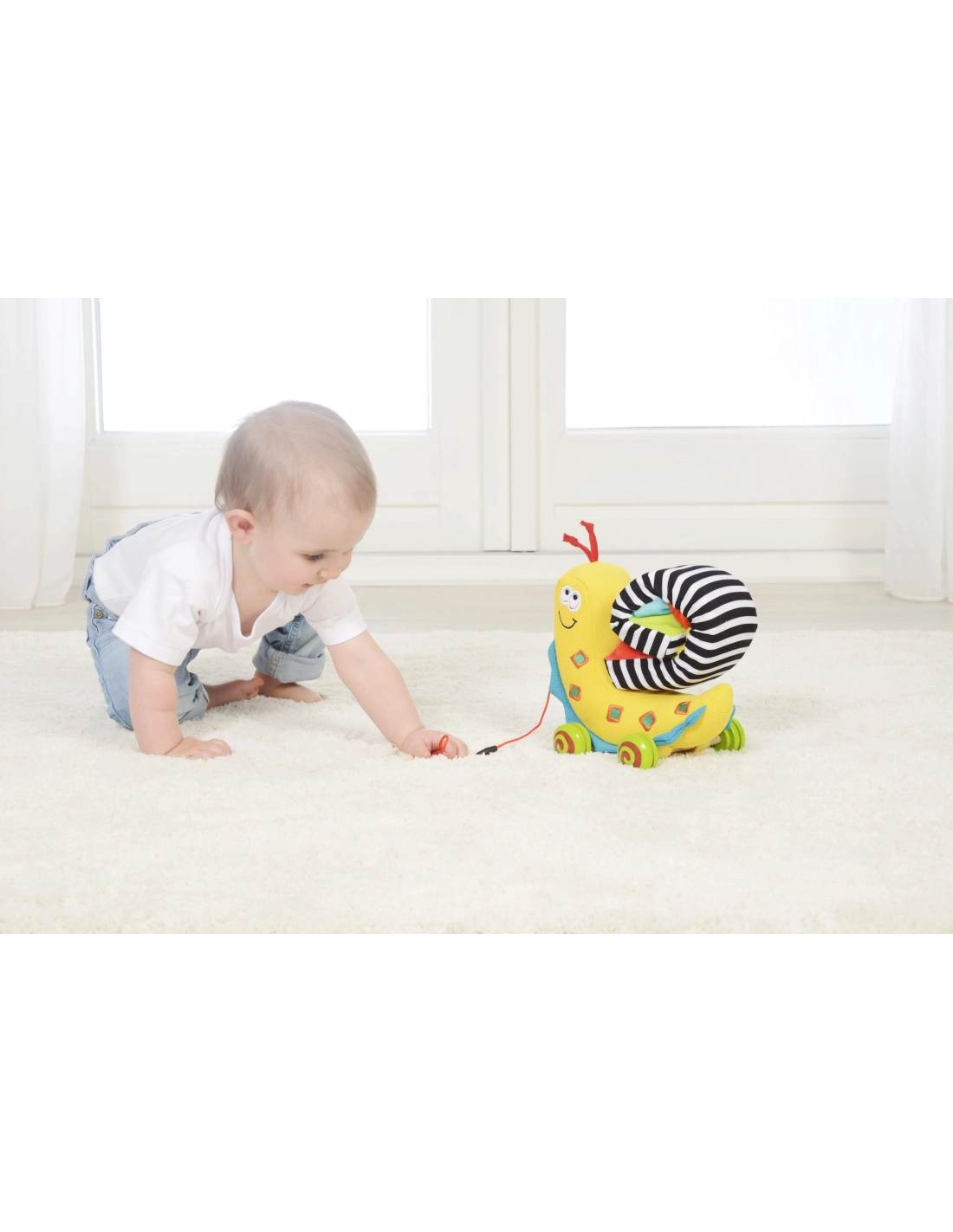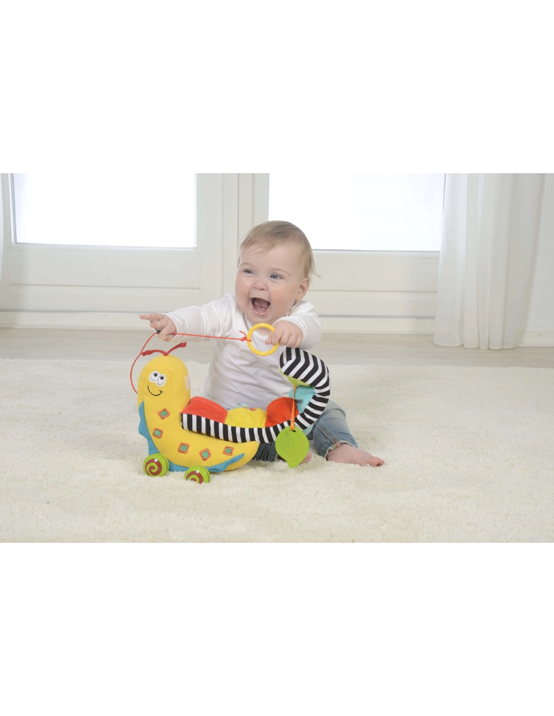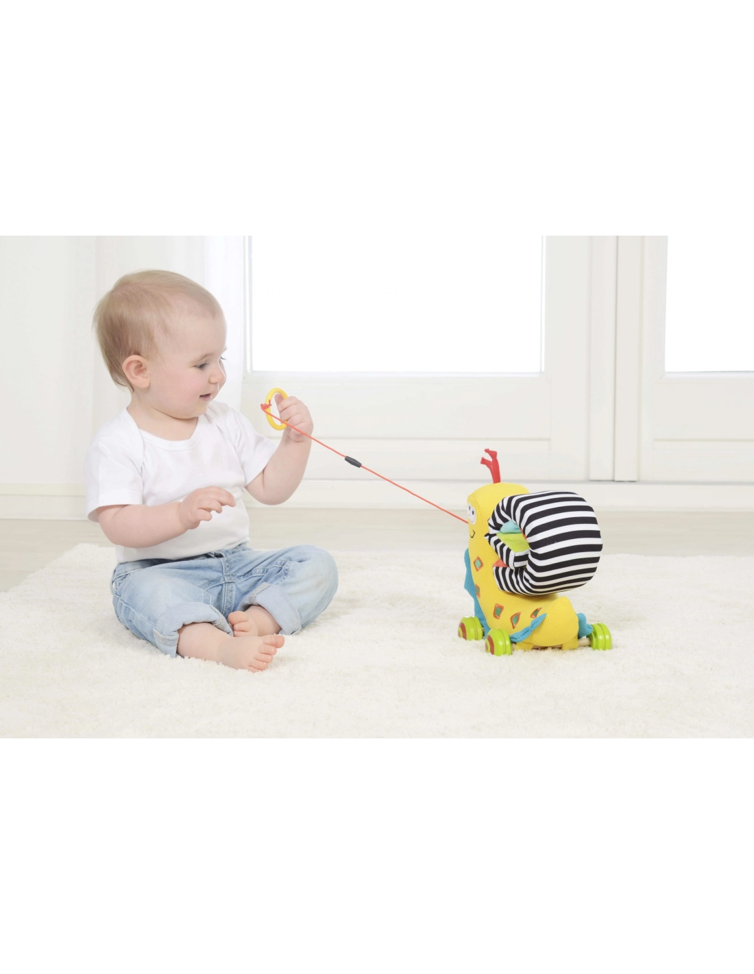- Apprentissage progressif : la corde à tirer encourage les premiers pas, puis s’enlève pour un jeu assis.