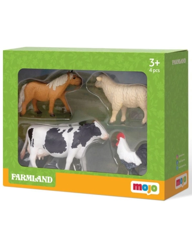 Ce coffret Mojo Farmland (Version A) réunit 4 animaux essentiels de la ferme dans une élégante boîte cadeau. Avec son poney, son mouton, sa vache et son coq, ce set constitue une base parfaite pour débuter ou enrichir une collection d'animaux domestiques.