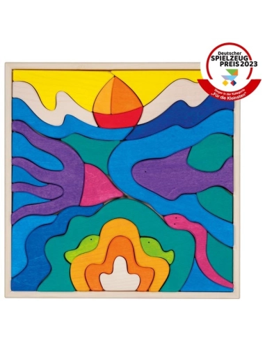 Le coffret de construction Océan de Goki Evolution est un jeu en bois d'érable de haute qualité, fabriqué en Europe. Ce set de 29 pièces aux couleurs magnifiquement coordonnées permet aux enfants dès 3 ans de créer leur propre univers, qu'il s'agisse d'un bateau naviguant sur un océan ou de toute autre forme issue de leur imagination.