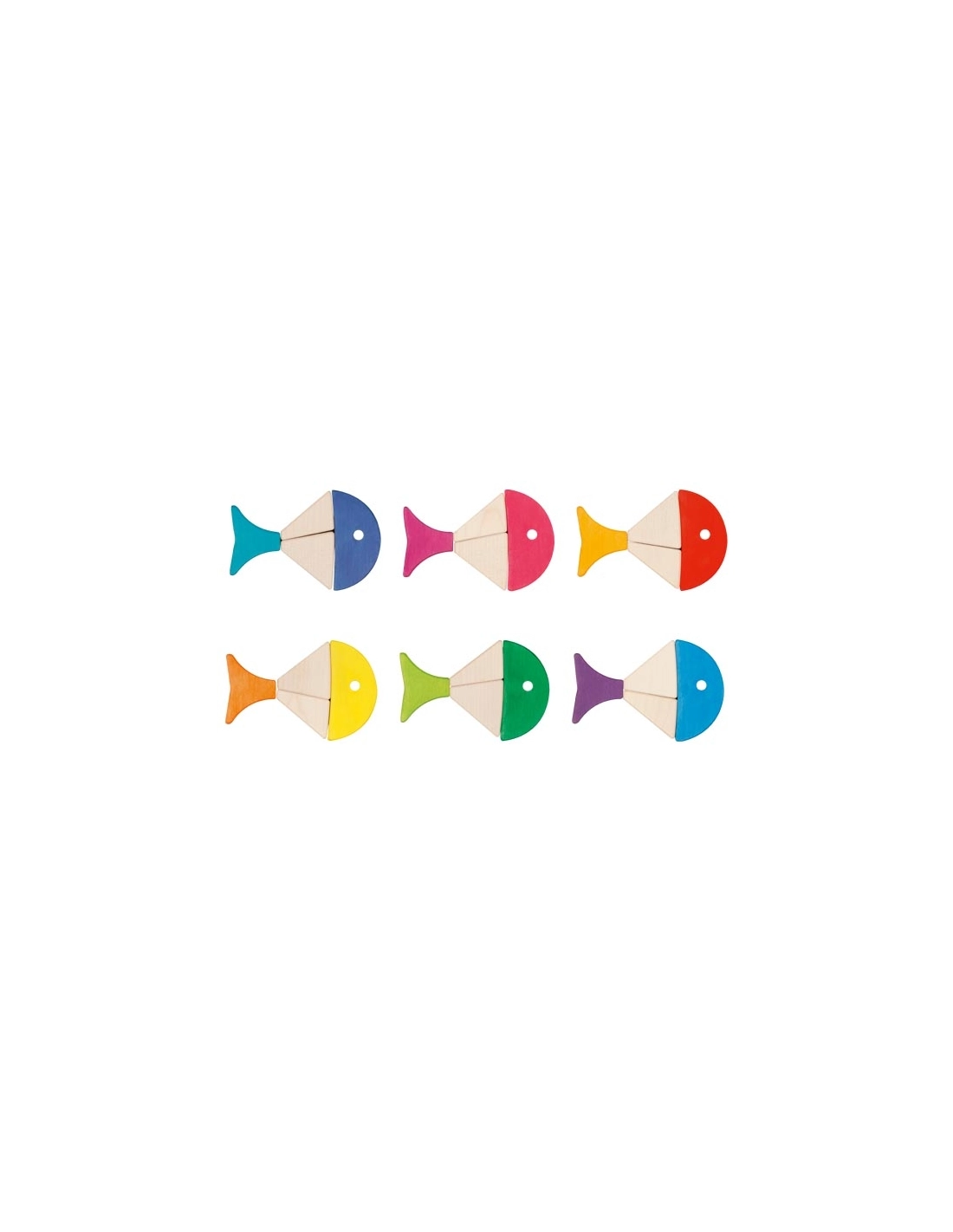 Laissez libre cours à l'imagination de votre enfant avec le coffret de construction et puzzle 6 poissons colorés de Goki Evolution. Ce jeu composé de 24 blocs en bois offre des possibilités infinies : créer des poissons colorés, construire des voiliers ou même des mandalas. Un jouet magnifique qui stimule la créativité dès 2 ans.