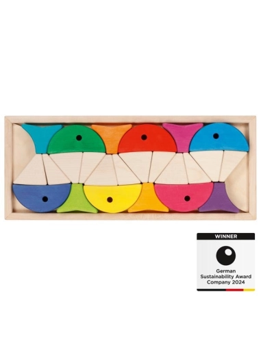 Le coffret de construction et puzzle 6 poissons colorés est conçu pour encourager la créativité des enfants. Avec ces 24 blocs en bois, les petits peuvent construire des poissons colorés, assembler des voiliers ou créer de magnifiques mandalas. Ce jouet polyvalent offre une expérience de jeu libre où seule l'imagination délimite ce qui est possible.