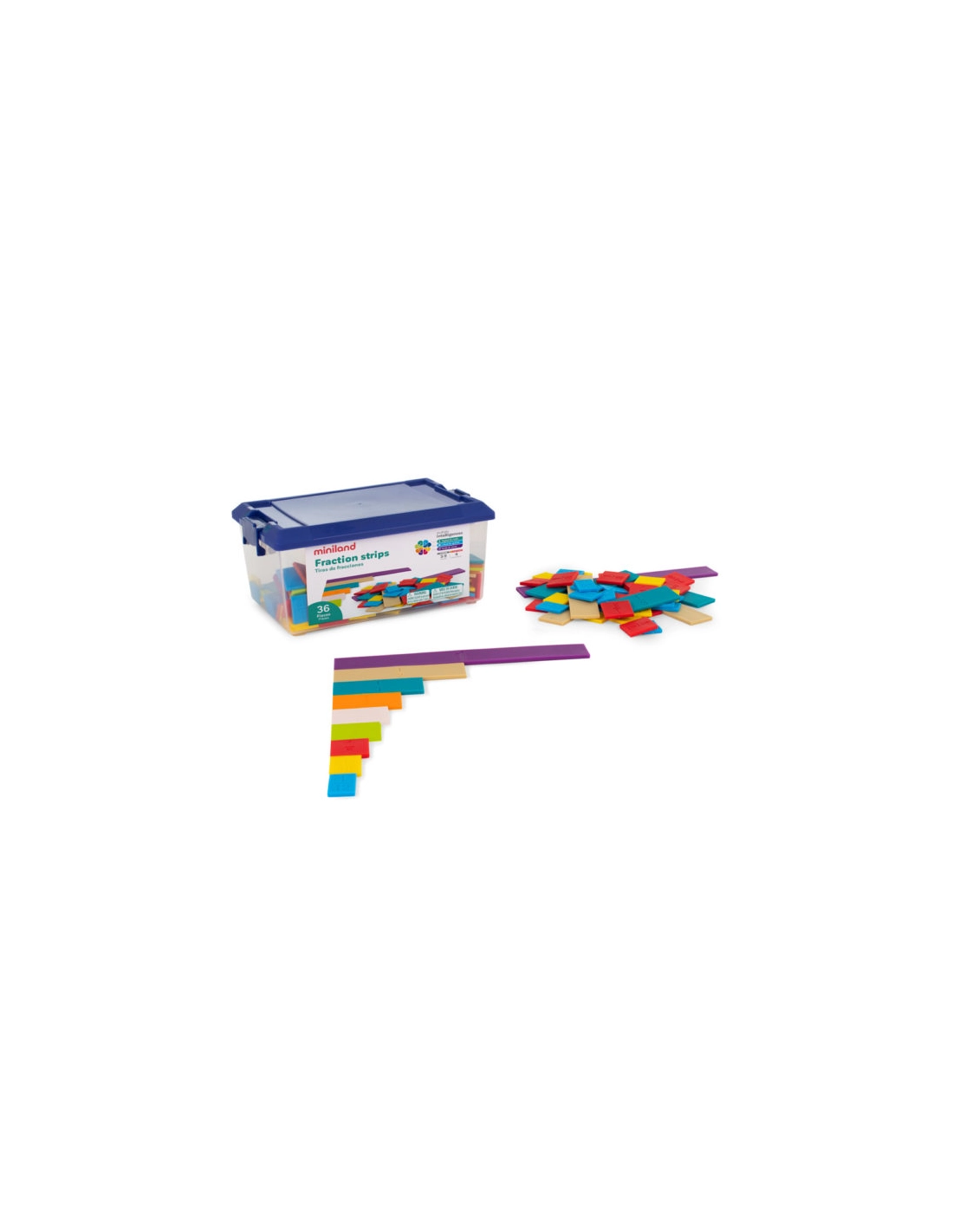 - Contenu : 204 réglettes codifiées par couleur, avec l'écriture fractionnaire indiquée sur chaque pièce