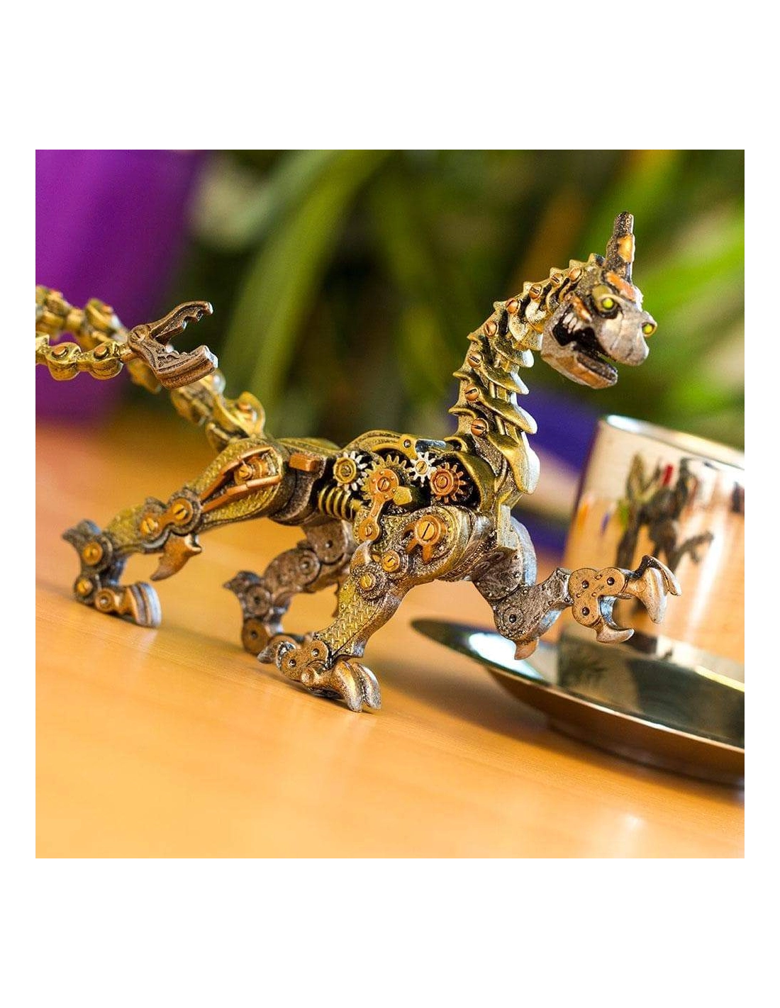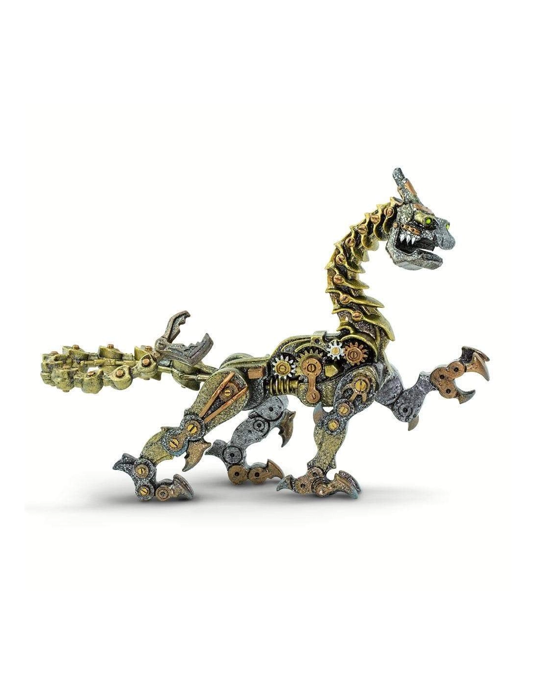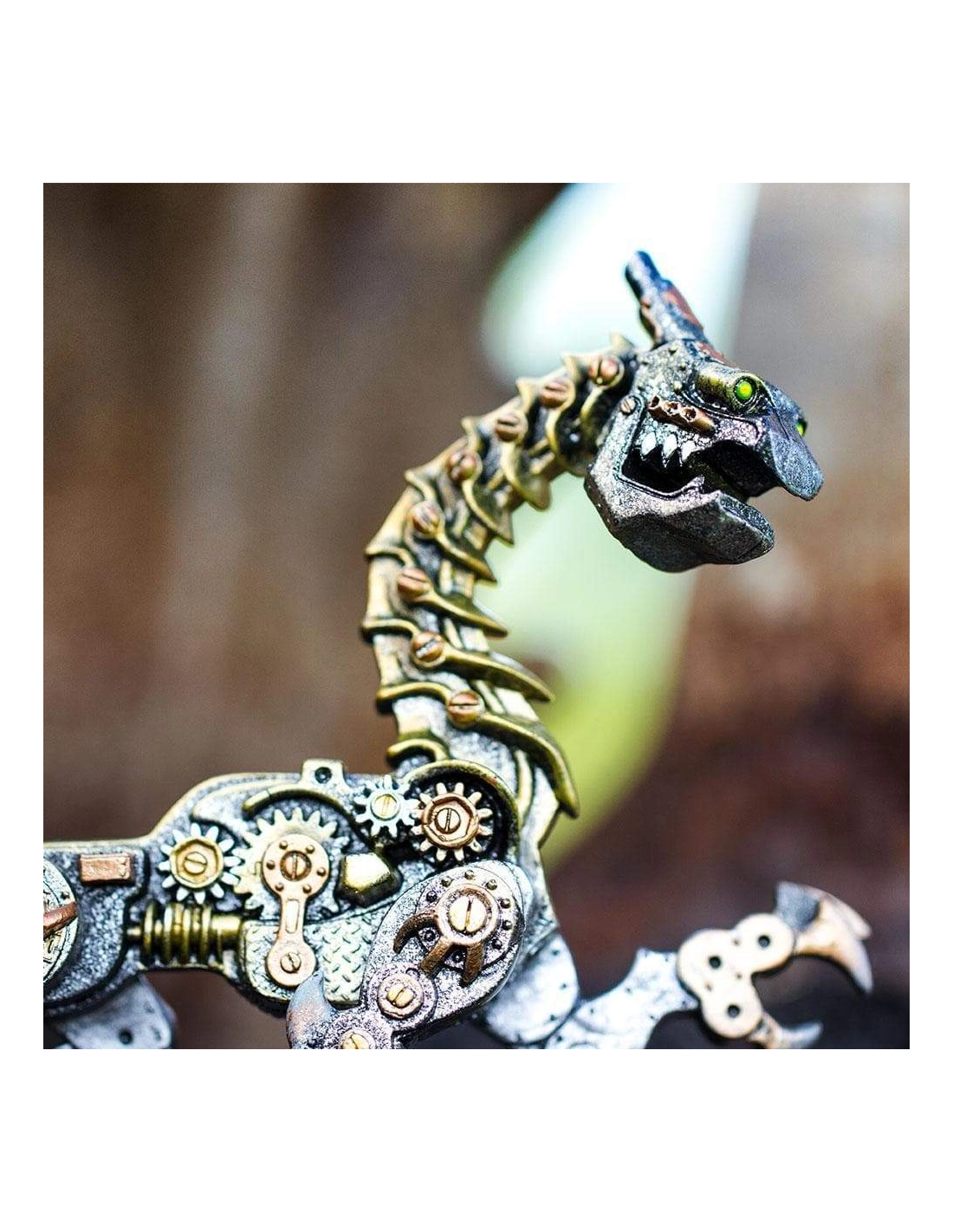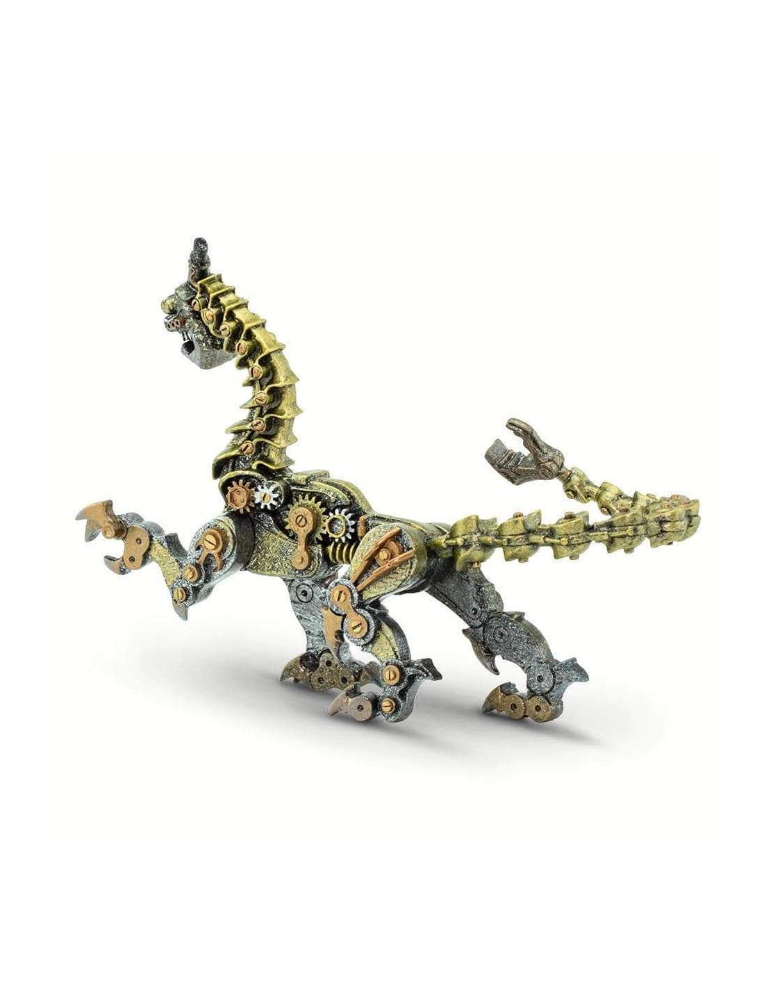- Design unique : Cette figurine représente un dragon entièrement constitué de pièces mécaniques. Chaque détail, des engrenages aux tuyaux, semble fonctionner en harmonie pour donner vie à ce monstre d’acier.