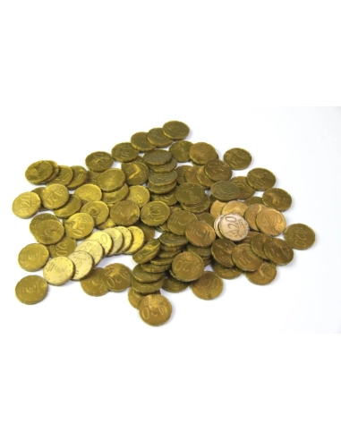 Vous voulez compléter votre collection de pièces en euros ou enrichir votre jeu de monnaie ? Les pièces en euros de 20 centimes sont faites pour vous ! Ces pièces en plastique sont disponibles par lot de 100 dans un sachet transparent. Elles sont imprimées des deux côtés avec la valeur de la pièce et le symbole de l’euro. La taille et la couleur sont proches de celles des vraies pièces en euros.