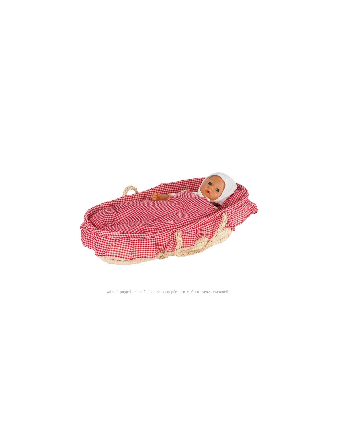 Le couffin en osier pour poupée est très pratique et facile à transporter. Avec ses dimensions de 58 x 33 x 15 cm, il est suffisamment grand pour accueillir toutes les poupées jusqu'à 52 cm.