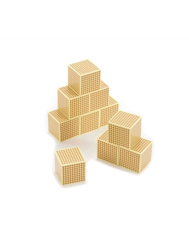 Le cube des milliers en bois Montessori est un outil pédagogique essentiel pour introduire les concepts du système décimal et des grandes quantités aux enfants. Chaque cube représente 1000 unités, permettant une visualisation concrète des mathématiques.