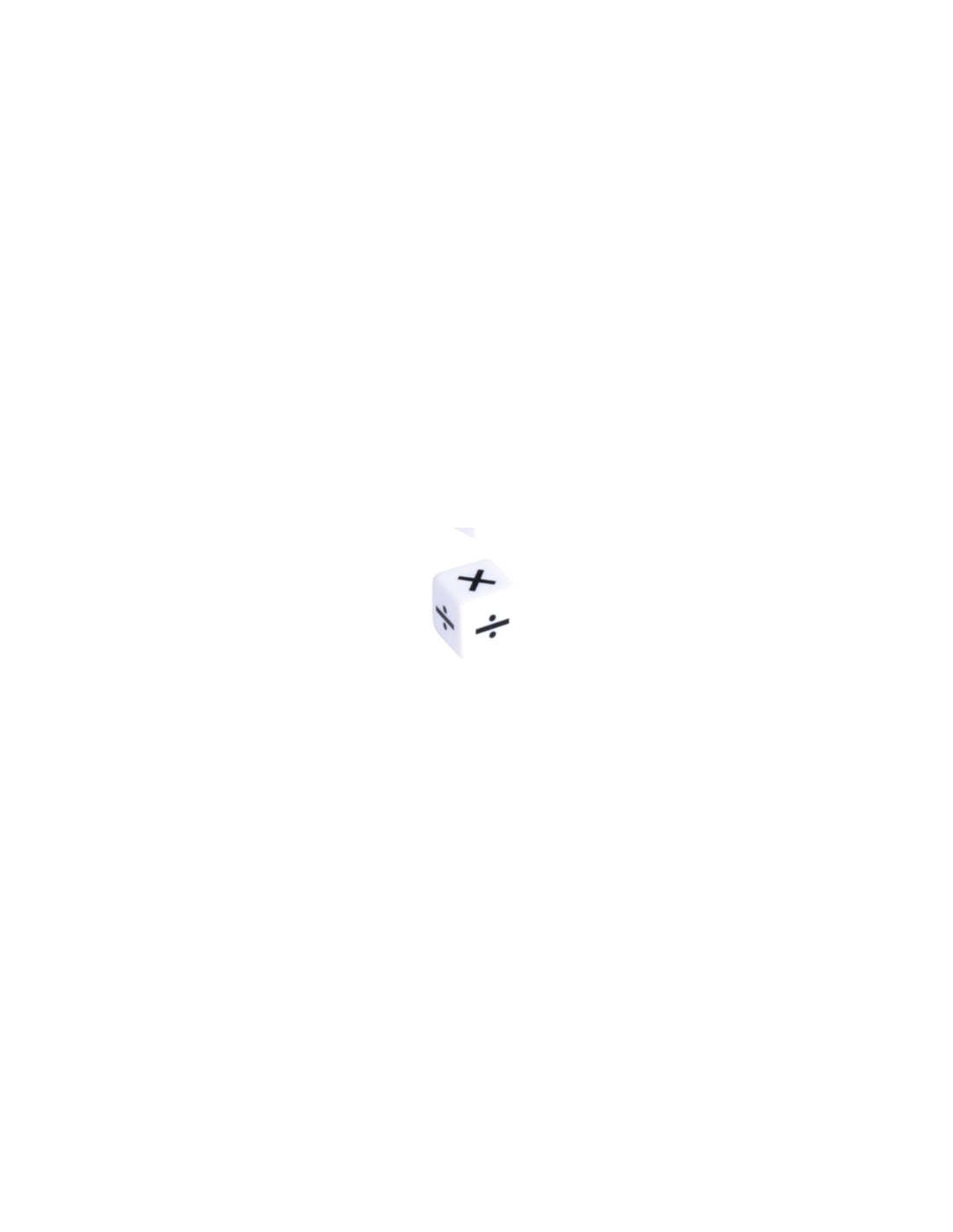 Ce dé spécial présente les signes d'addition (+) et de soustraction (-) sur ses faces, offrant un support ludique pour l'apprentissage des opérations de base en mathématiques au primaire.