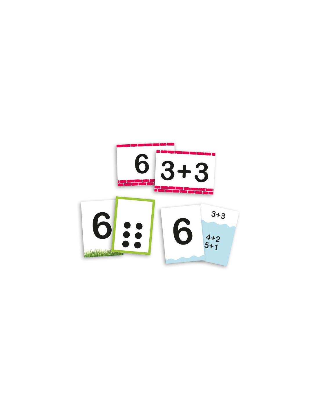 Proposez d'associer les cartes représentant le même nombre sous différentes formes (chiffres, points, décompositions).