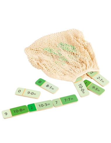 Ce matériel Montessori favorise la compréhension du principe de la soustraction, le calcul mental, la mémorisation des tables de soustraction et le vocabulaire mathématique.