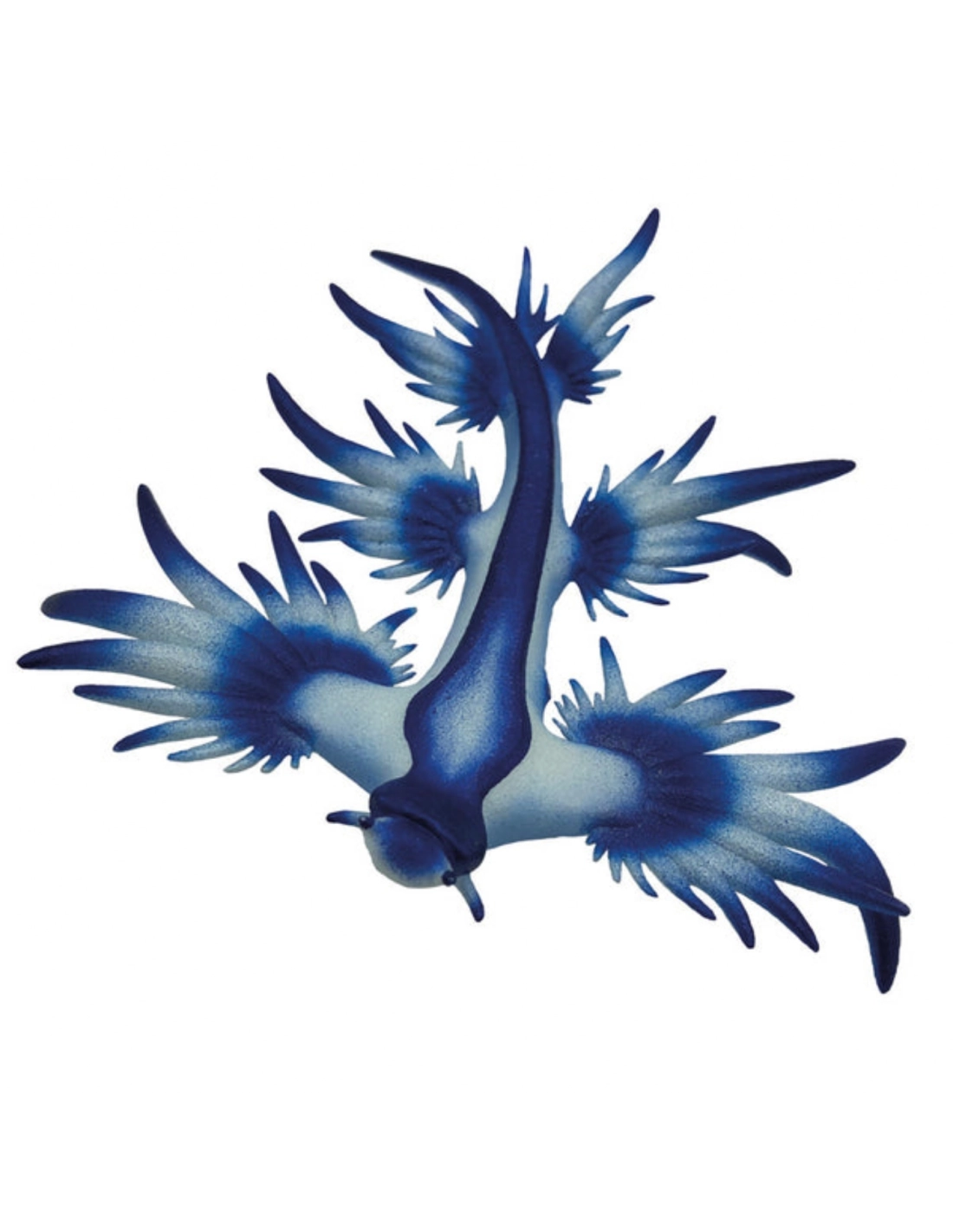 Cette figurine Bullyland représente le fascinant Glaucus atlanticus, communément appelé Dragon bleu ou Hirondelle de mer. Ce nudibranche pélagique, reconnaissable à sa coloration bleue saisissante et ses appendices caractéristiques, est fidèlement reproduit dans cette pièce de collection adaptée aux amateurs de biologie marine.