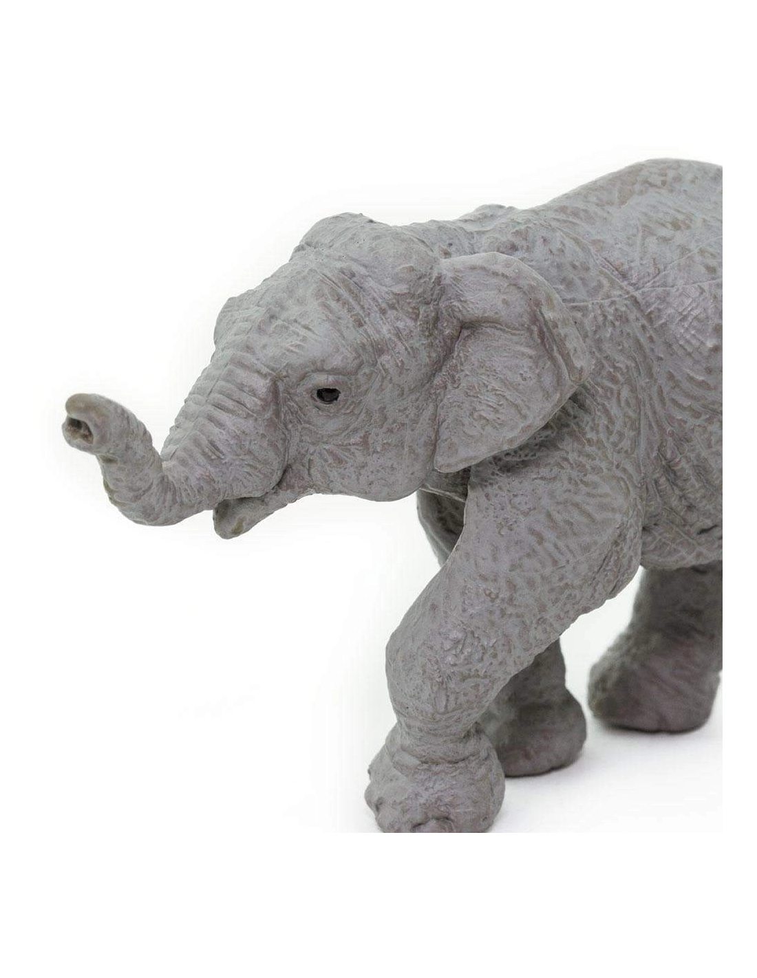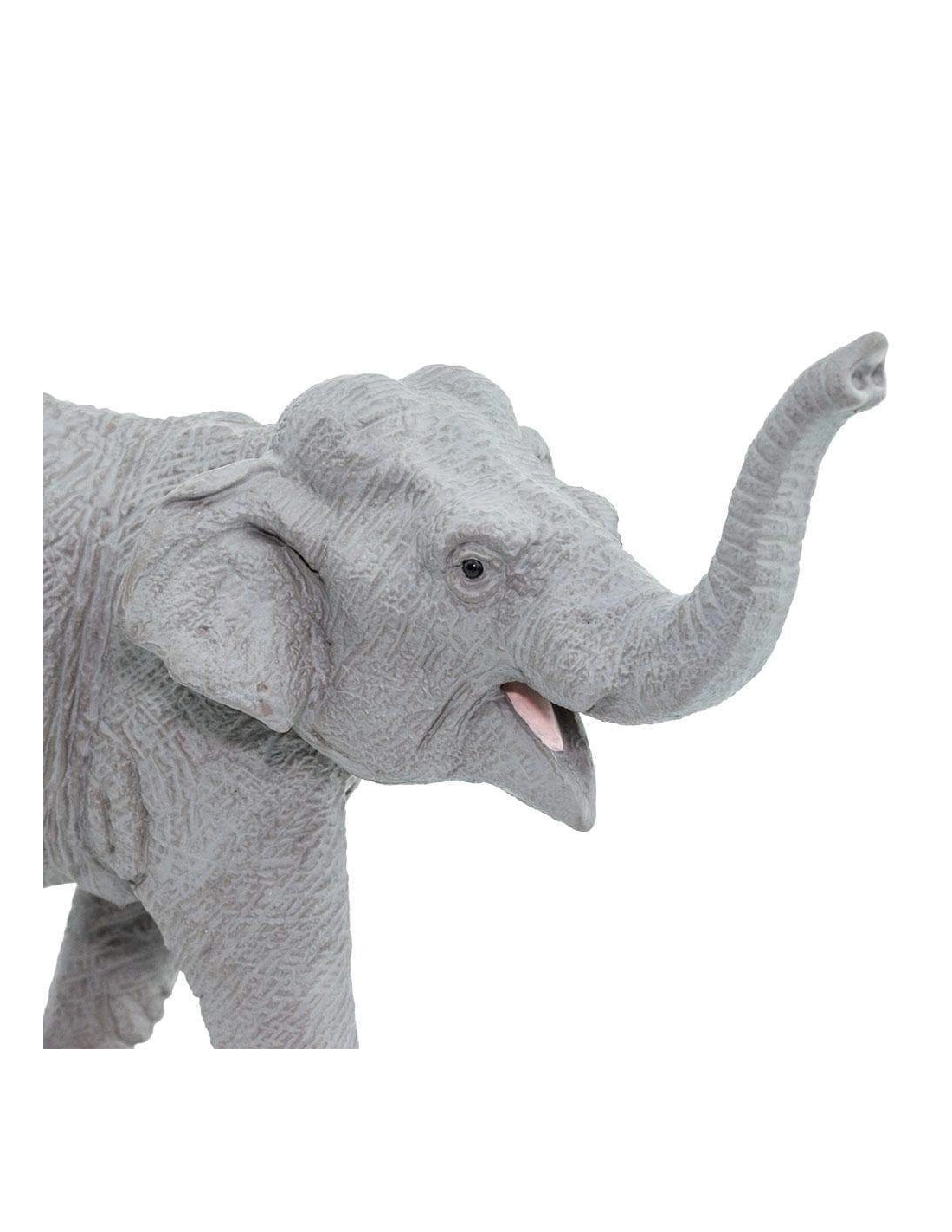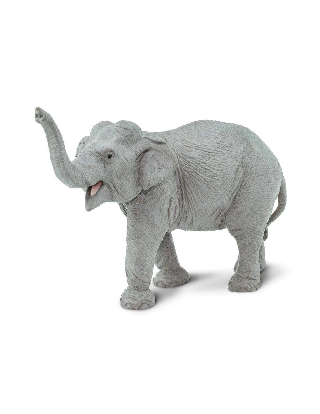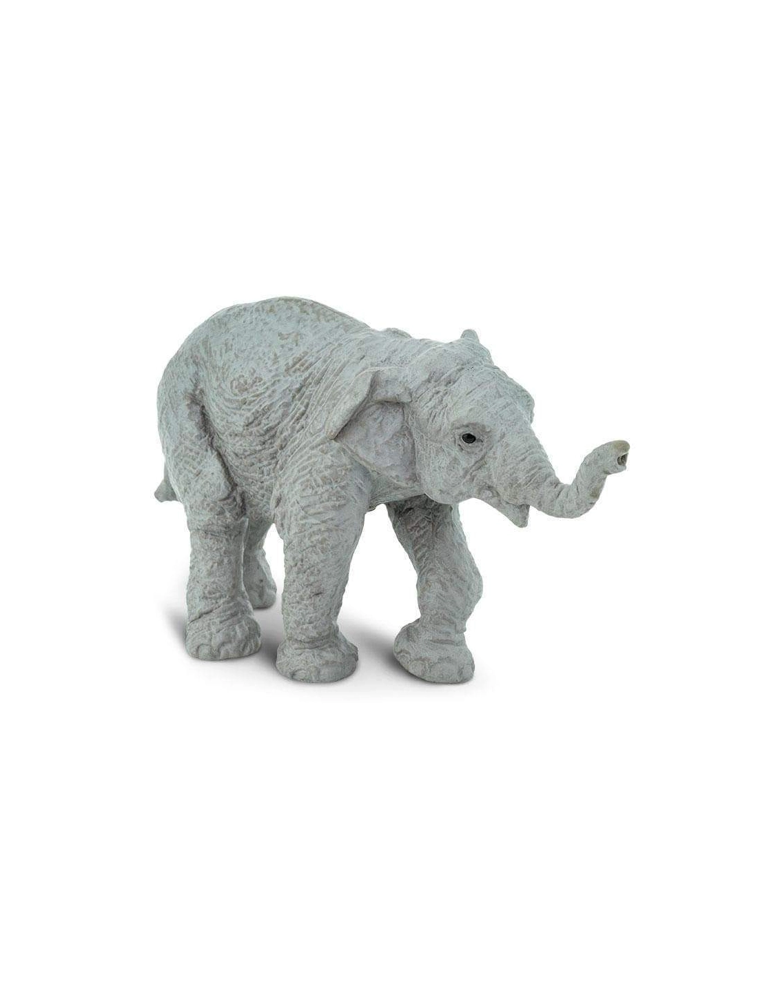 L'éléphanteau d'Asie Safari Ltd® (référence 222329) est tout aussi remarquable par sa finition et son réalisme. Avec ses oreilles déployées et sa trompe légèrement relevée, il exprime la curiosité et l'enthousiasme typiques des jeunes éléphants.