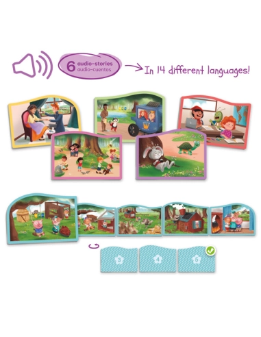 Actuellement, les contes sont disponibles en français. Cependant, nous travaillons à l'élaboration de versions en anglais et en espagnol qui seront proposées prochainement en téléchargement complémentaire. Ce sera une excellente façon d'utiliser le matériel également pour l'apprentissage des langues.