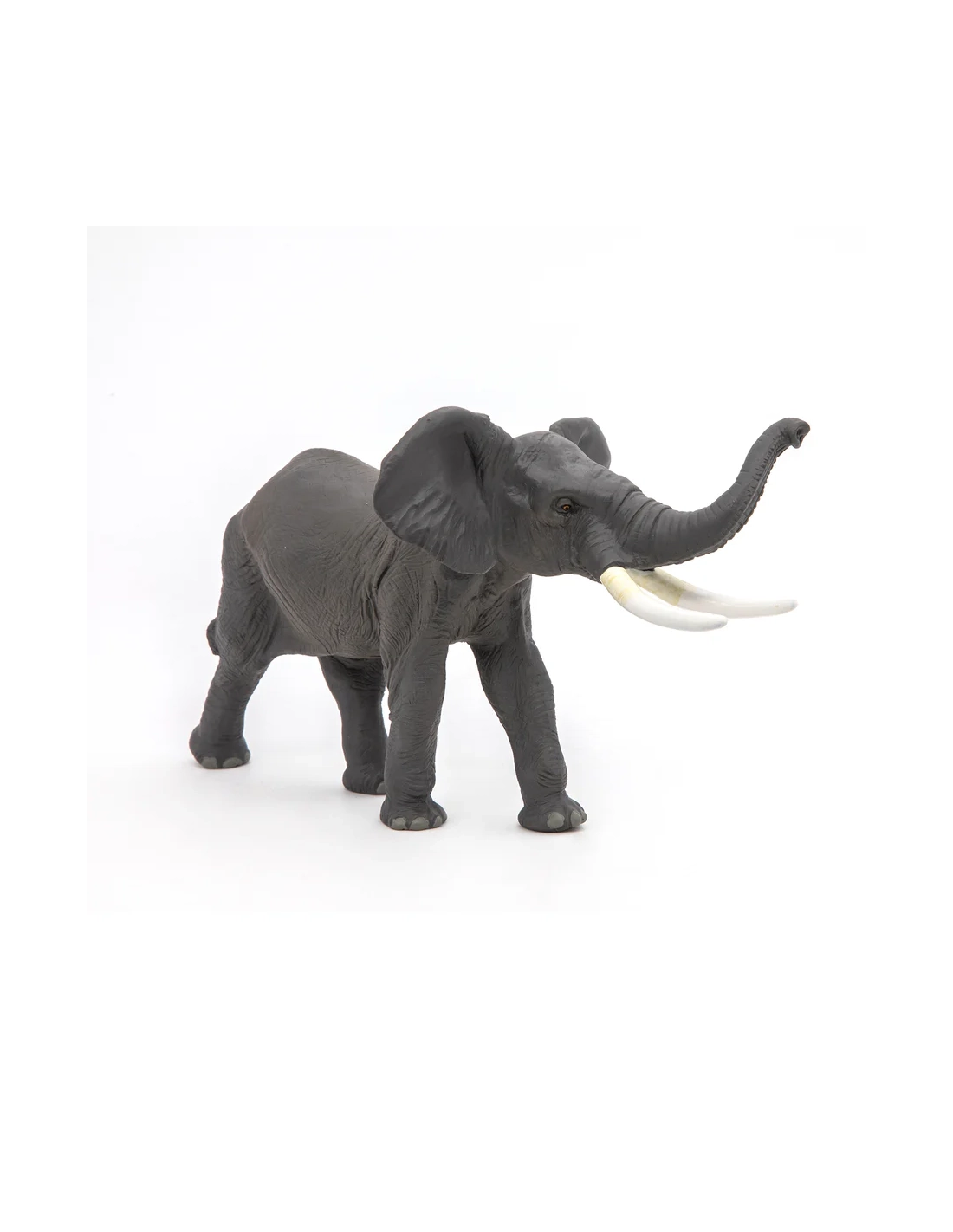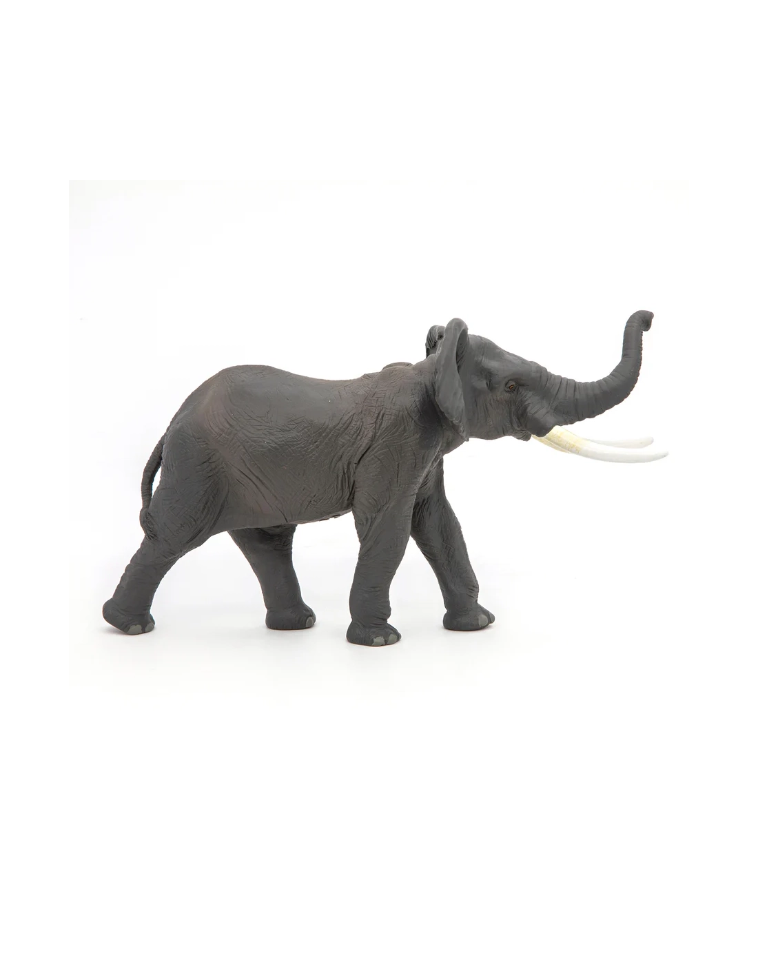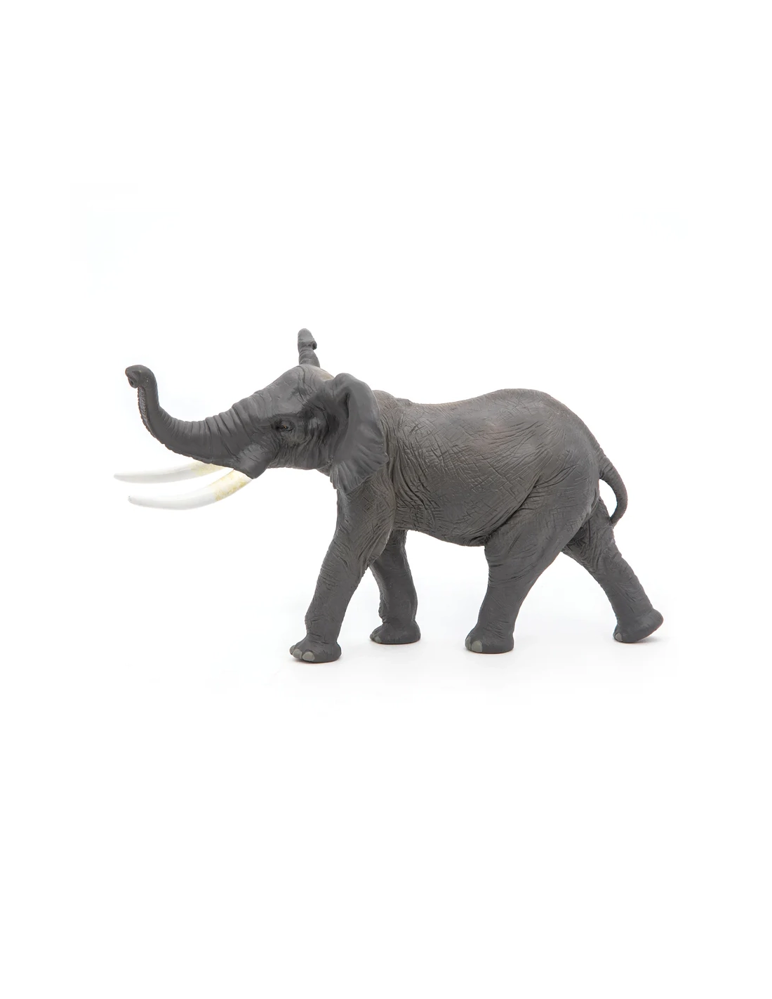 La précision anatomique — peau, oreilles, défenses, coussinets — et la posture active en font une pièce de collection sérieuse. À associer avec le jeune éléphant d'Afrique Papo pour constituer une famille cohérente sur une étagère de collection.