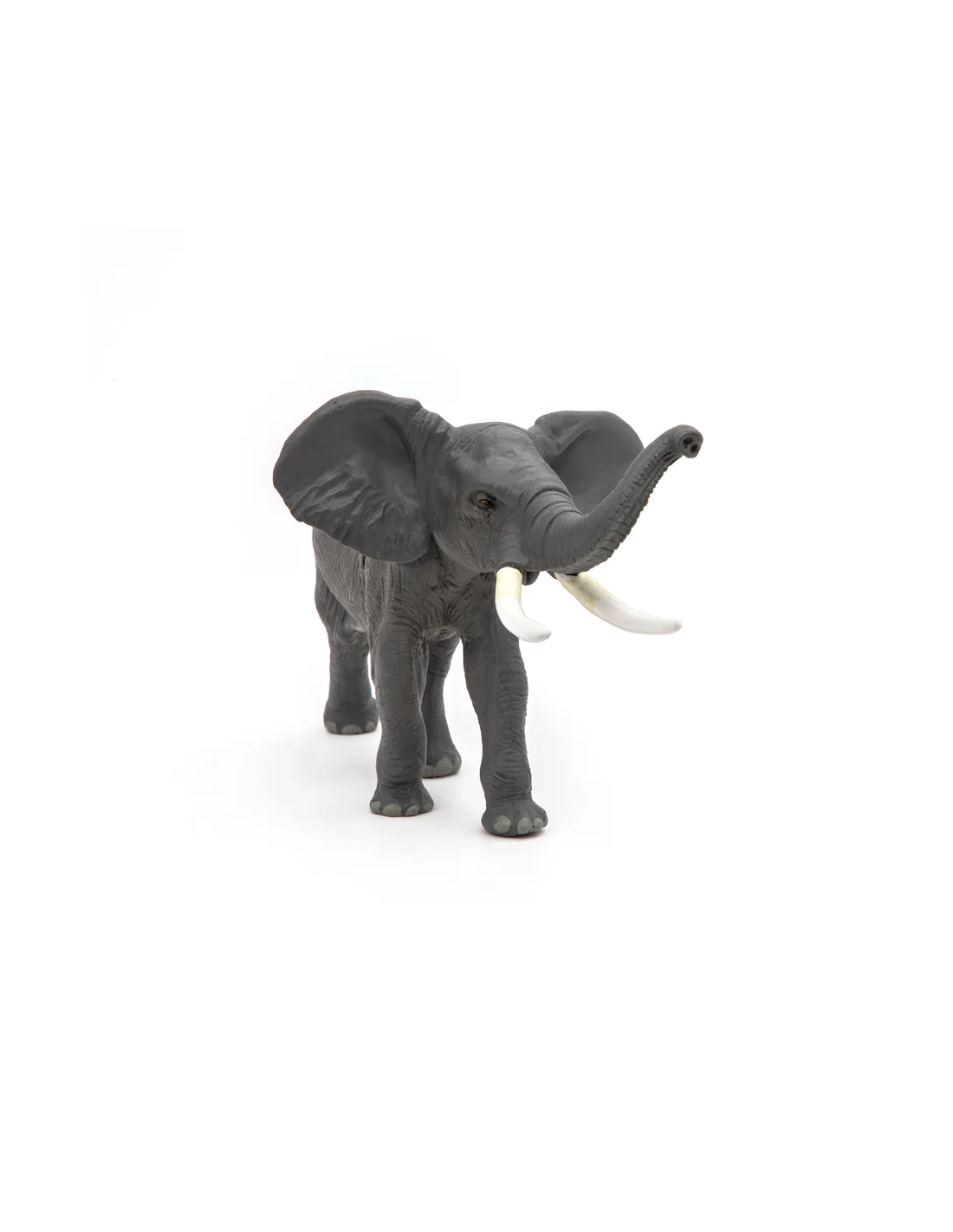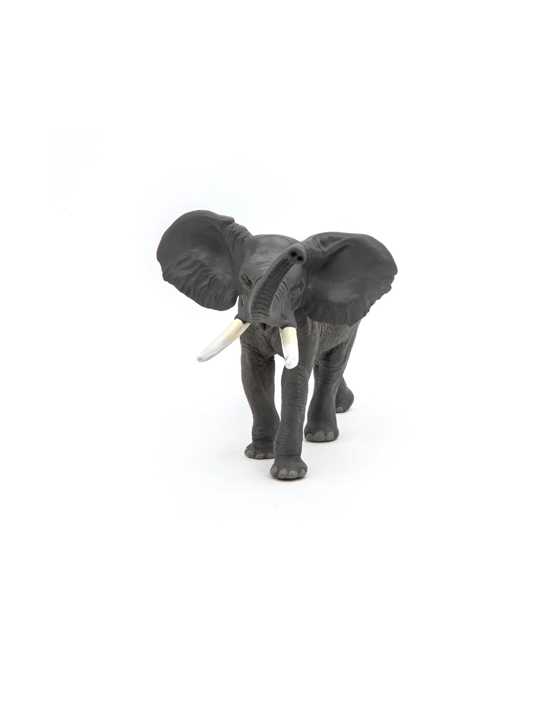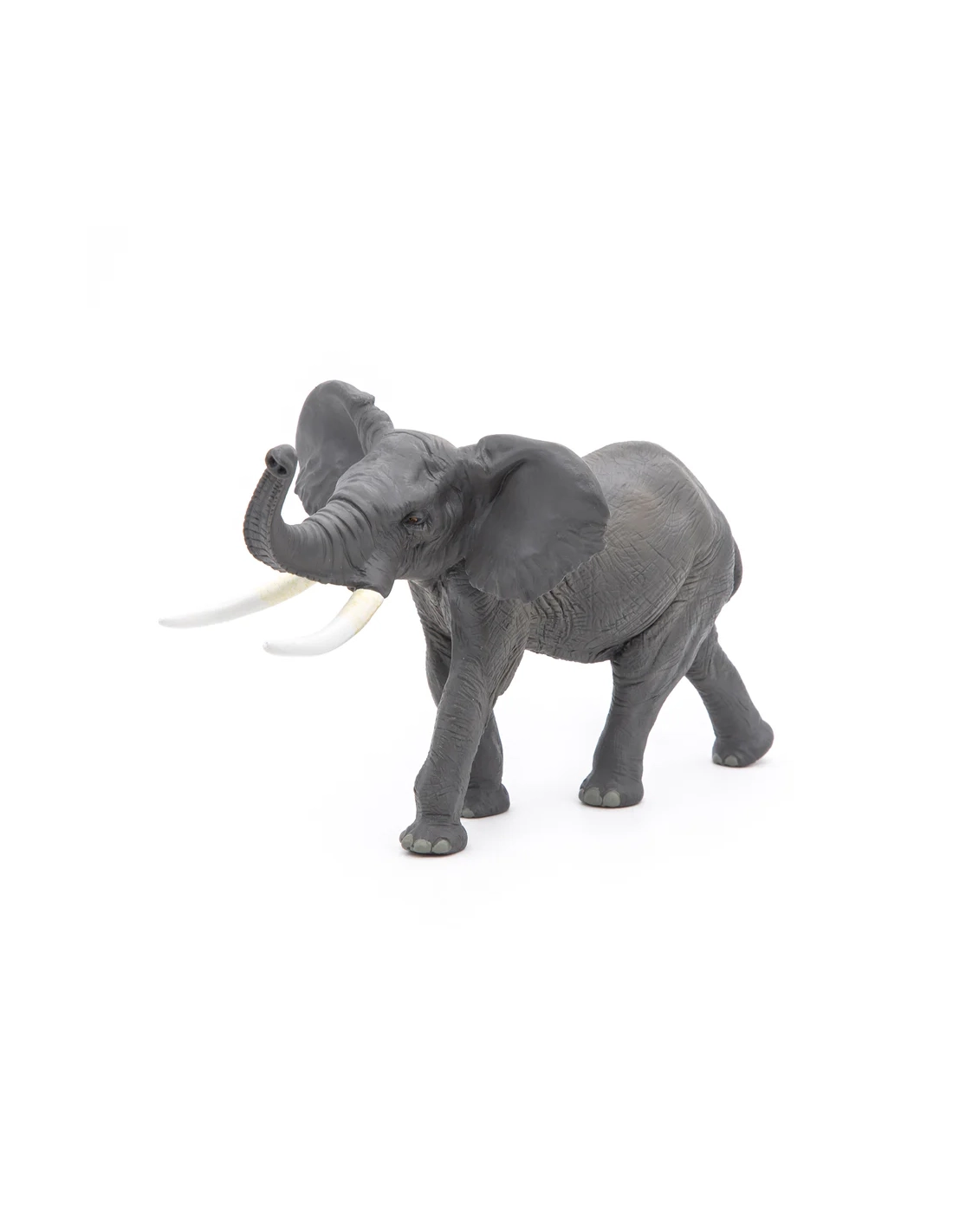 La précision anatomique — peau, oreilles, défenses, coussinets — et la posture active en font une pièce de collection sérieuse. À associer avec le jeune éléphant d'Afrique Papo pour constituer une famille cohérente sur une étagère de collection.