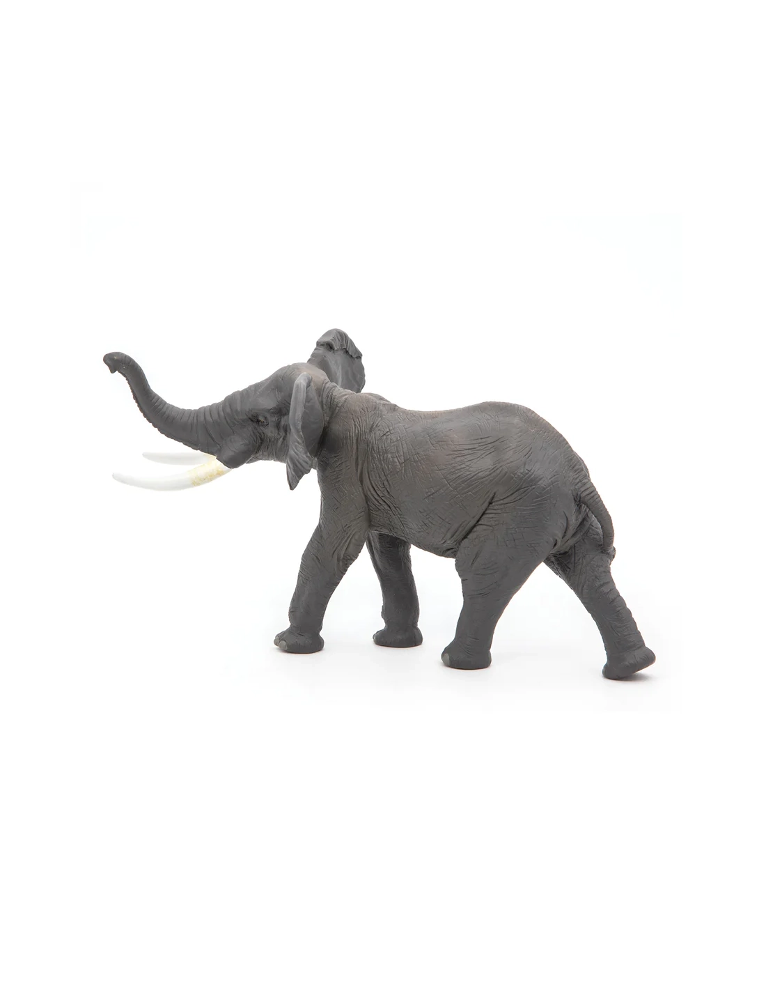 La majorité des figurines d'éléphant représentent l'animal en marche neutre ou au repos — une posture descriptive, sans narratif. La posture de barrissement de cette figurine Papo dit quelque chose de plus : elle place l'éléphant dans un instant social, dans un acte de communication, dans une interaction avec un environnement invisible mais présent.