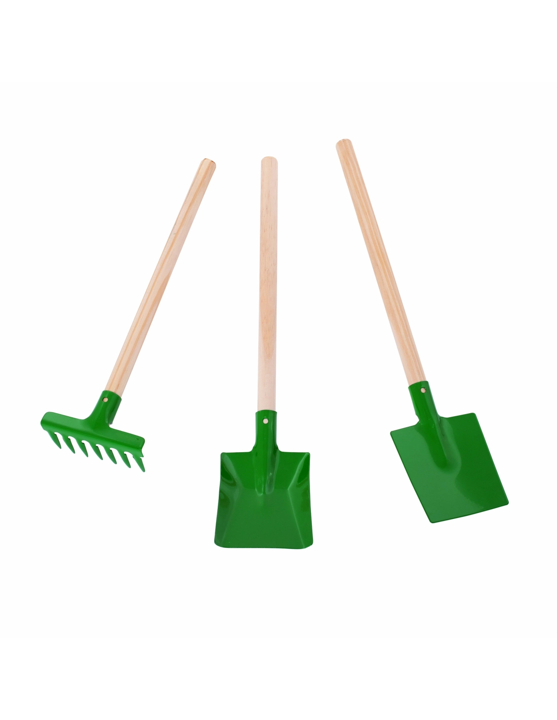 - Inclus : Un râteau, une pelle, et une petite bêche, mesurant respectivement 32 cm x 10 cm, 39 cm x 8 cm, et 38 cm x 8 cm, idéals pour une variété d'activités ludiques et éducatives en plein air.