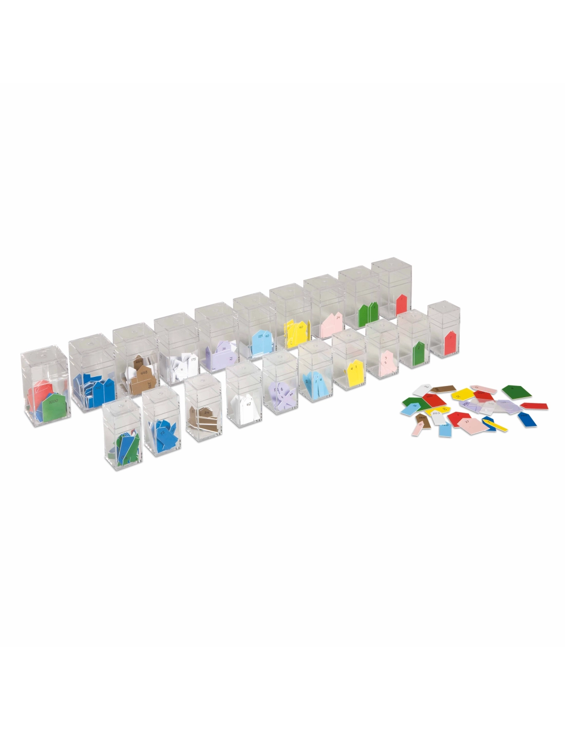 Escalier de Perles Colorées, un matériel éducatif essentiel pour l'apprentissage des concepts de numération et de séquence selon la méthode Montessori. Cet ensemble comprend des barrettes de perles colorées allant de 1 à 10, idéal pour aider les enfants à comprendre les nombres et leurs quantités correspondantes.