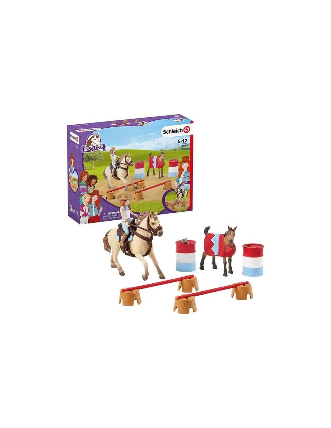 Découvrez l'ensemble entraînement au ranch pour compléter votre univers Horse Club Schleich ! Le poulain Quarter Horse est emmené à l’entraînement d’équitation Western par Hannah. Il observe l’étalon contourner les obstacles avec rapidité. Grâce à leur réalisme, les figurines Schleich® permettent à votre enfant d'imaginer de nombreuses histoires avec ses chevaux et de vivre des moments de jeu pédagogiques.