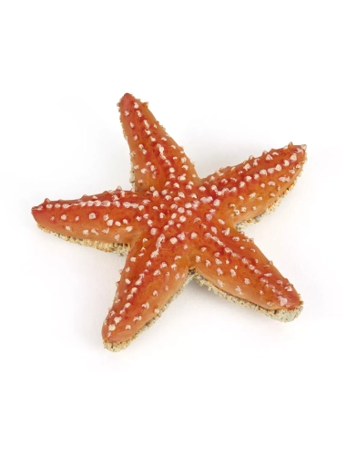 Cinq bras orangés garnis de petites ventouses : l’Étoile de mer commune (Asterias rubens) rayonne sur une aquarelle veloutée, prête à plonger dans l’aire zoologie Montessori.