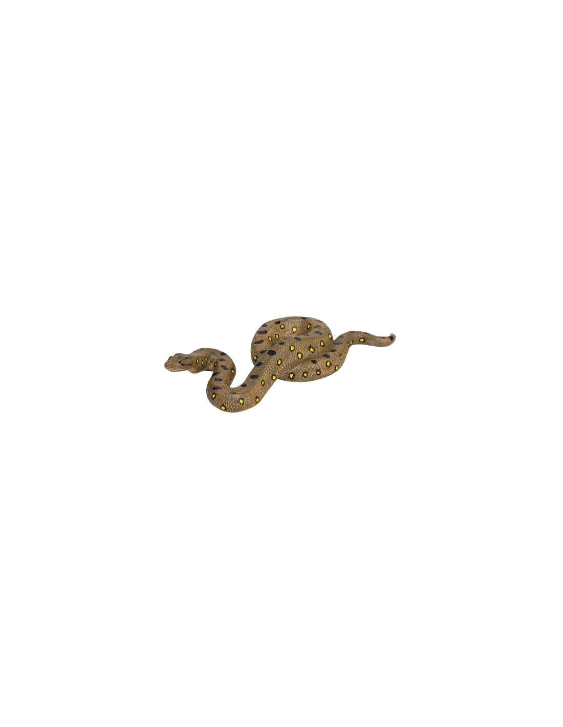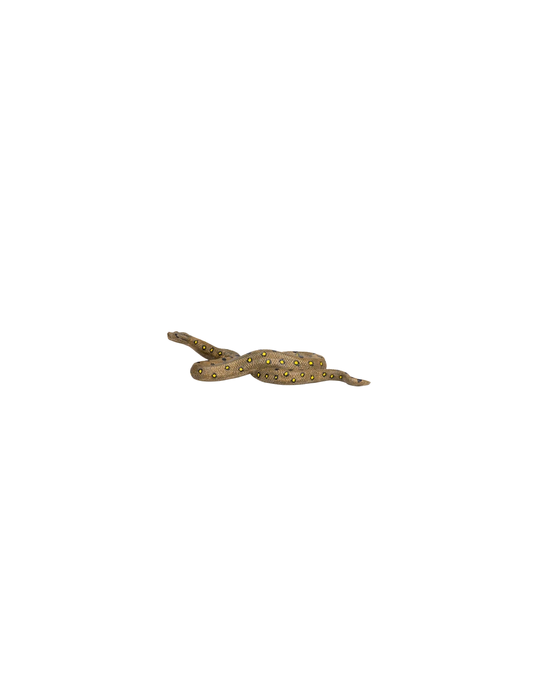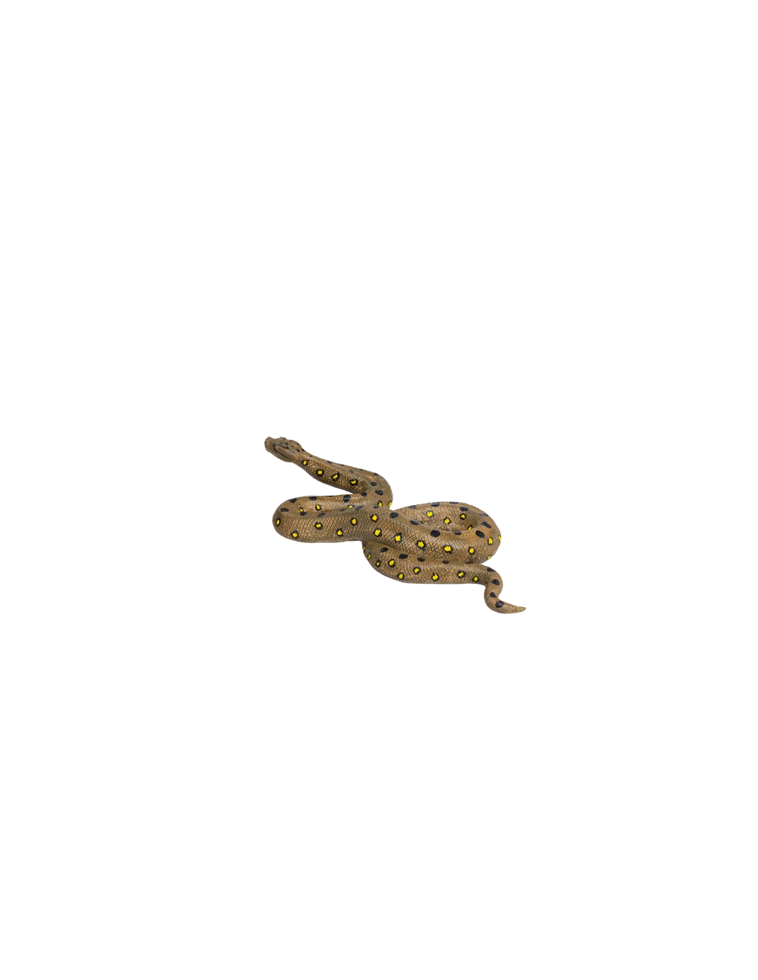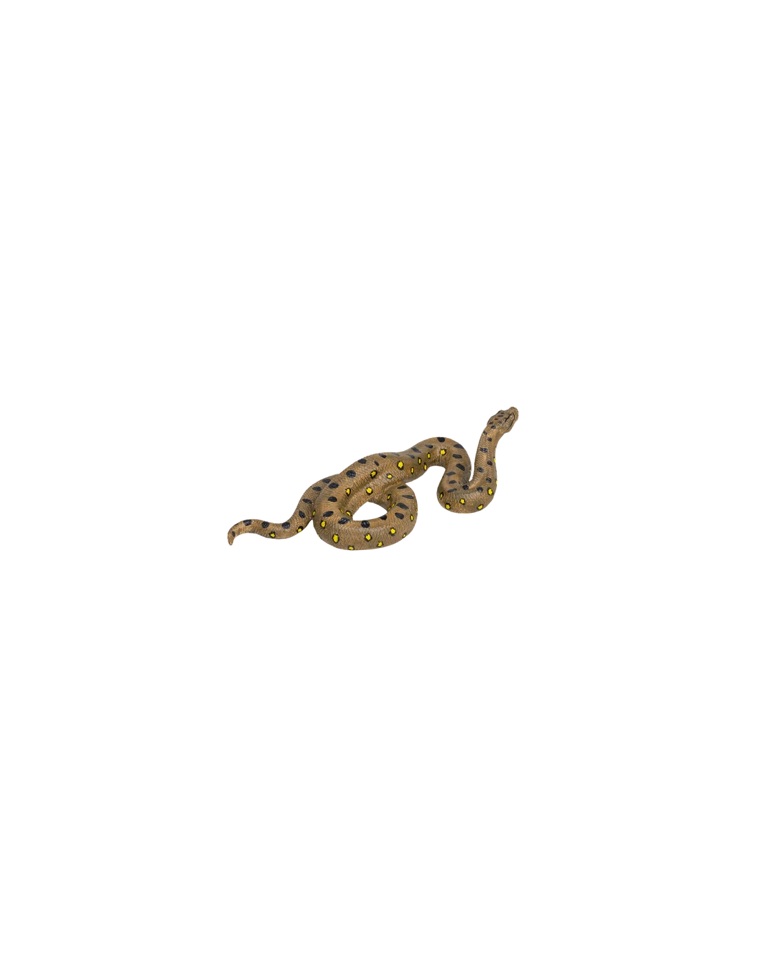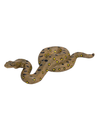 La figurine est peinte principalement en vert foncé avec des taches noires et jaunes sur sa peau écailleuse. Elle est sculptée en position semi-enroulée, prête à partir à l’aventure avec vous dans la jungle.
